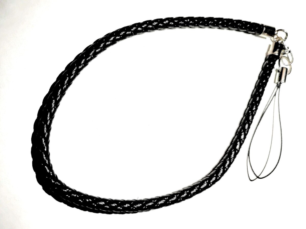 This stylish black silver braided leather cell phone holder lanyard is very easy to use can also be converted to a keychain holder if desired if you have a good size keyring or buy a large lobster clasp.