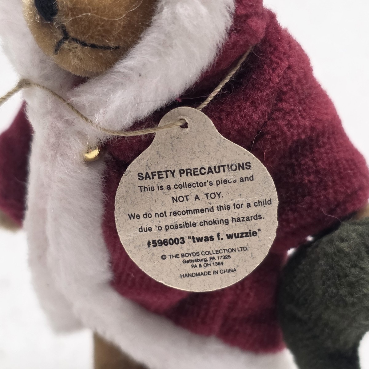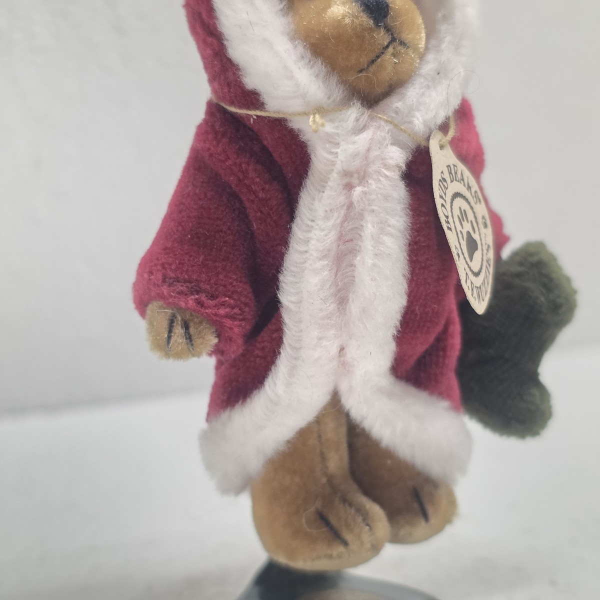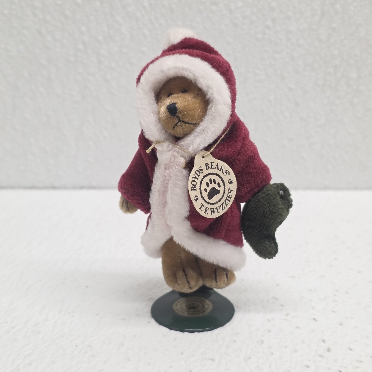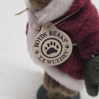 Boyds Bears Santa 3" Christmas Twas F. Wuzzie Holding Stocking On Stand