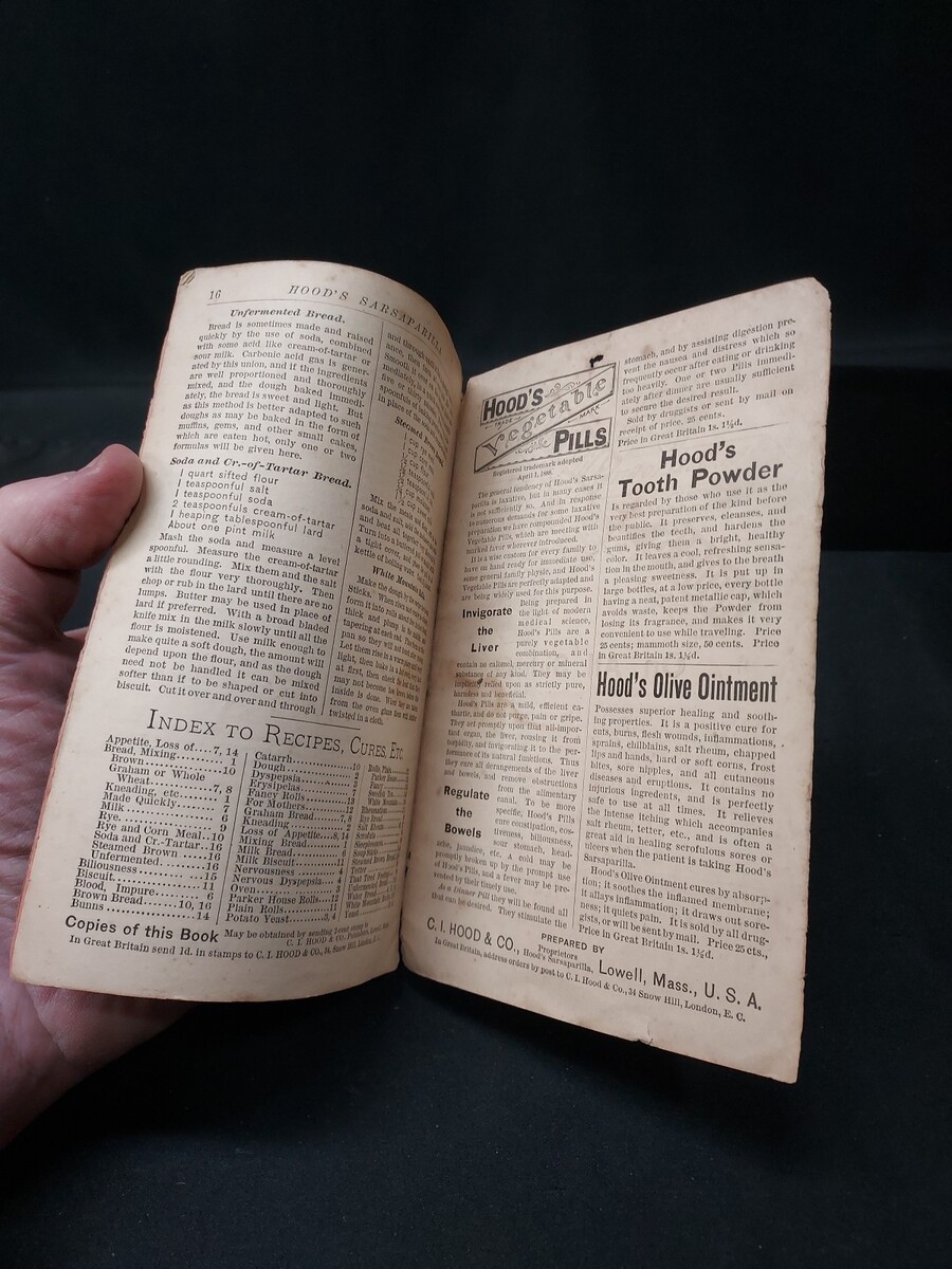C. 1900 HOODS SARSAPARILLA Lowell Mass GOOD BREAD Quack Medical & RECIPE BOOKLET