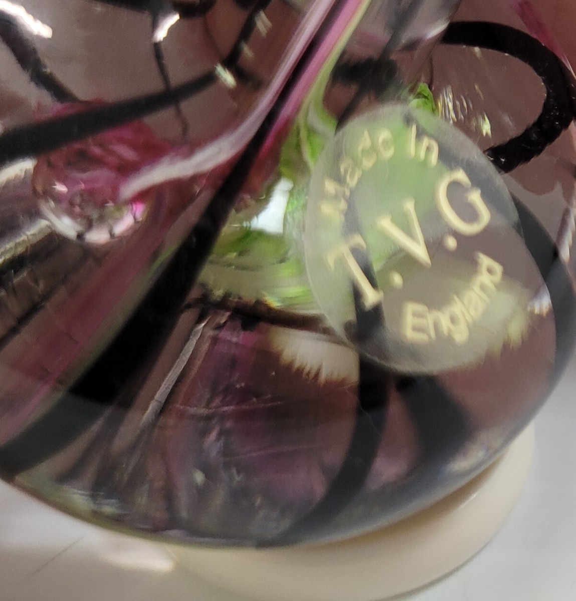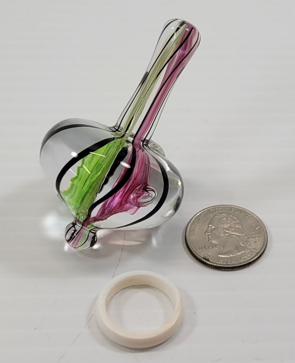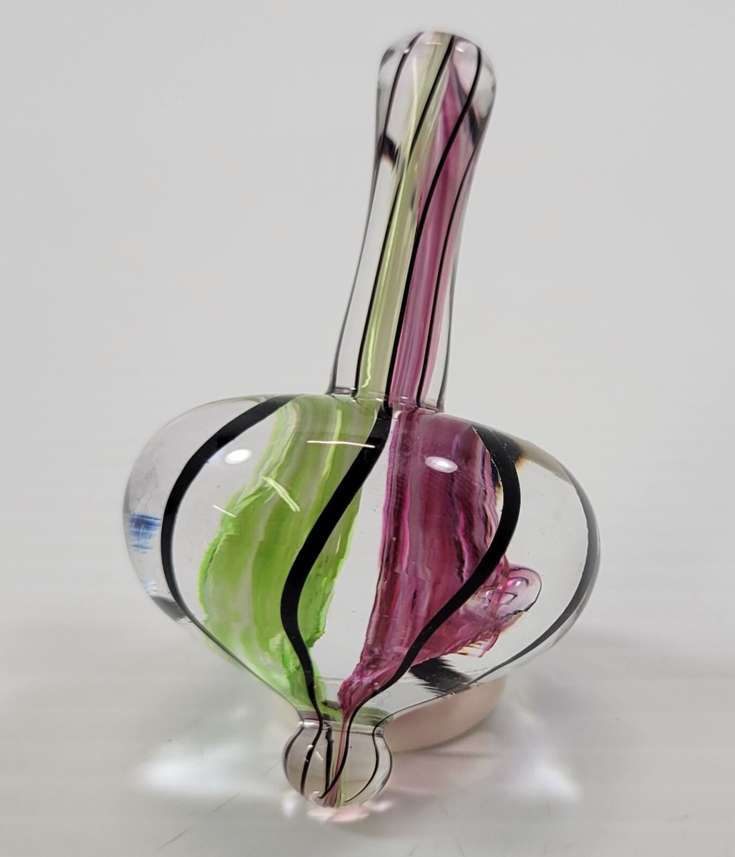 *B9) Teign Valley Glass TVG England Hand Blown Decorative Spinning Top with Ring