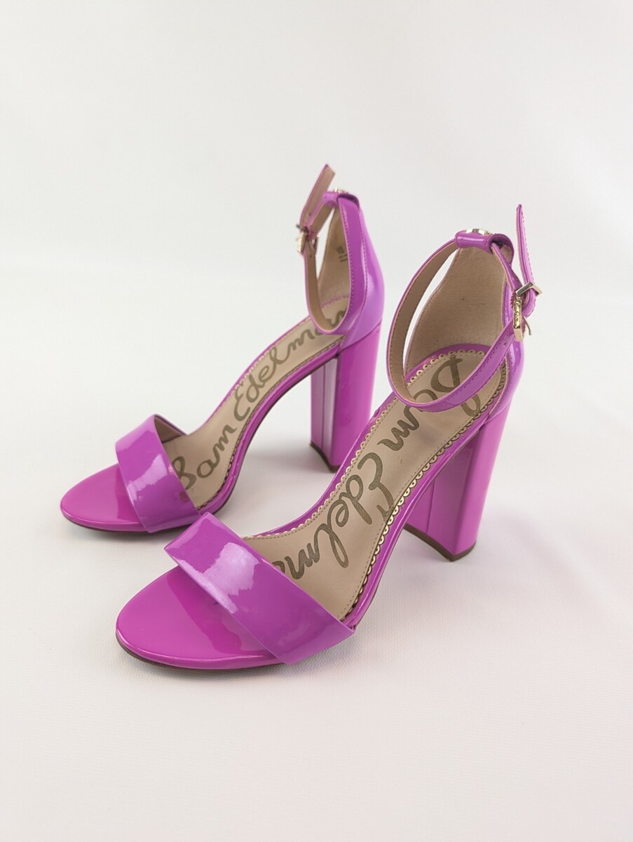 Sam Edelman Purple Patent Block Heel Sandals Size 7 Women Open Toe Ankle Strap