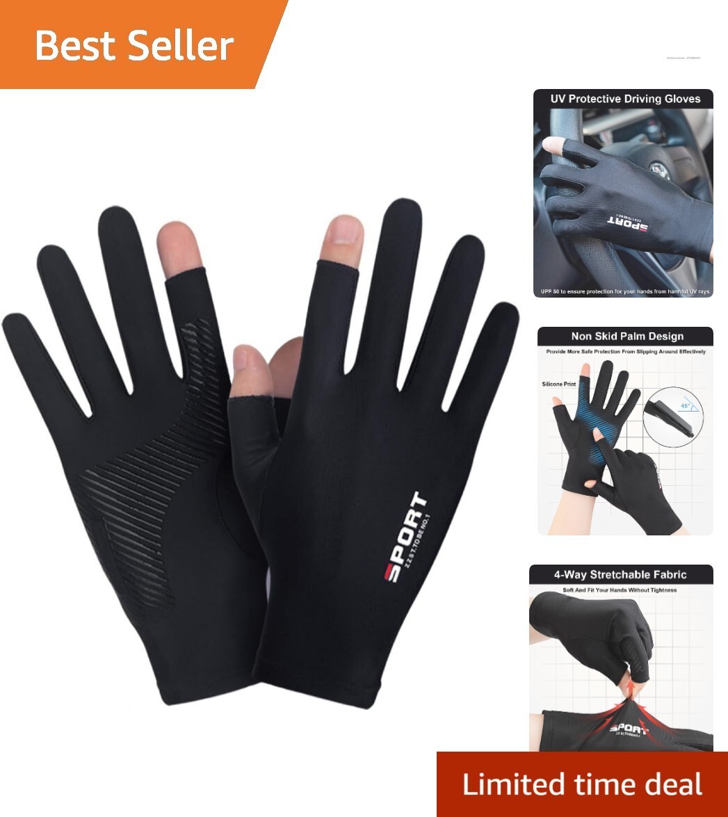Moisture-Wicking Fingerless Gloves - UV Protection for Men & Women, Large
