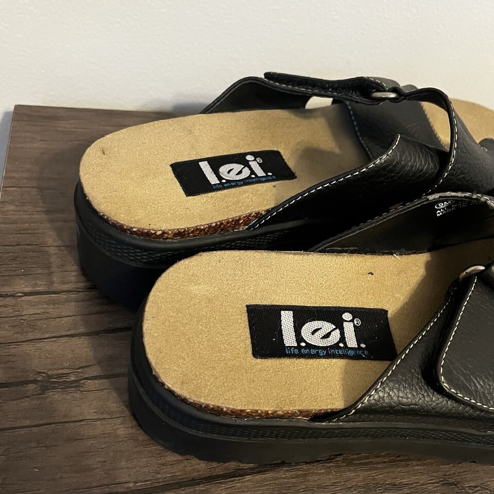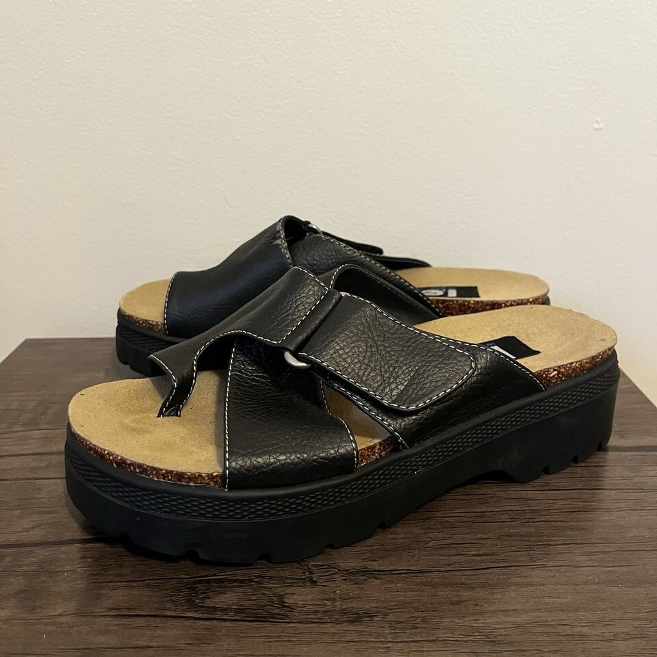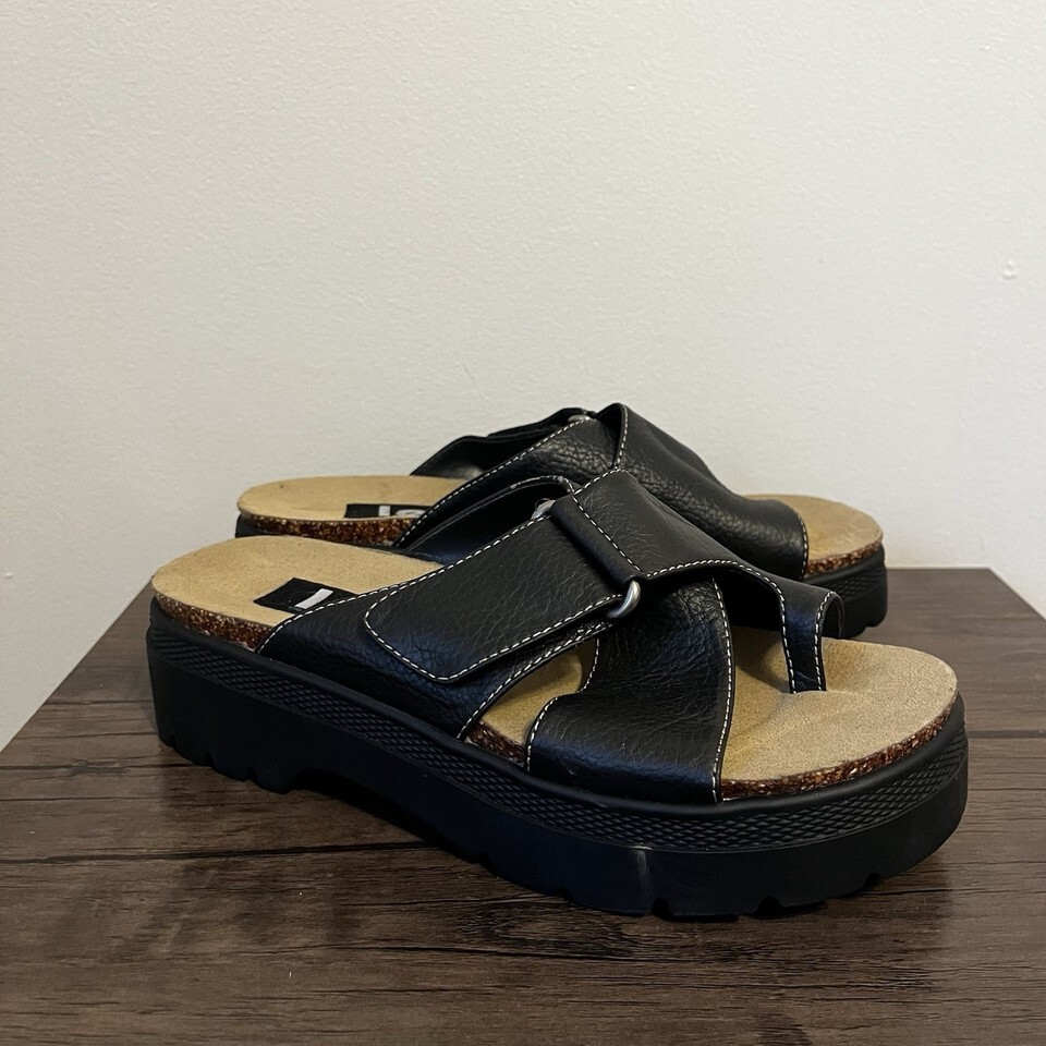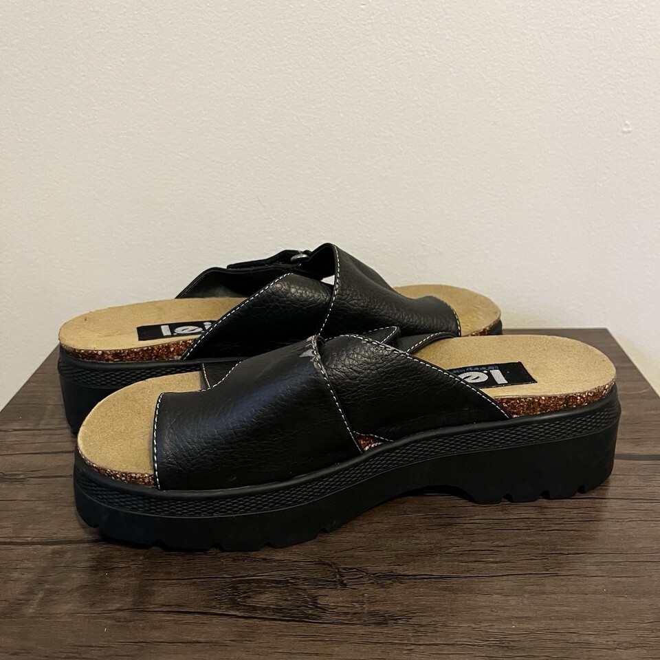Vintage l.e.i. Celia Black Platform Sandals Slides Women’s Size 9 9M LEI 90s
