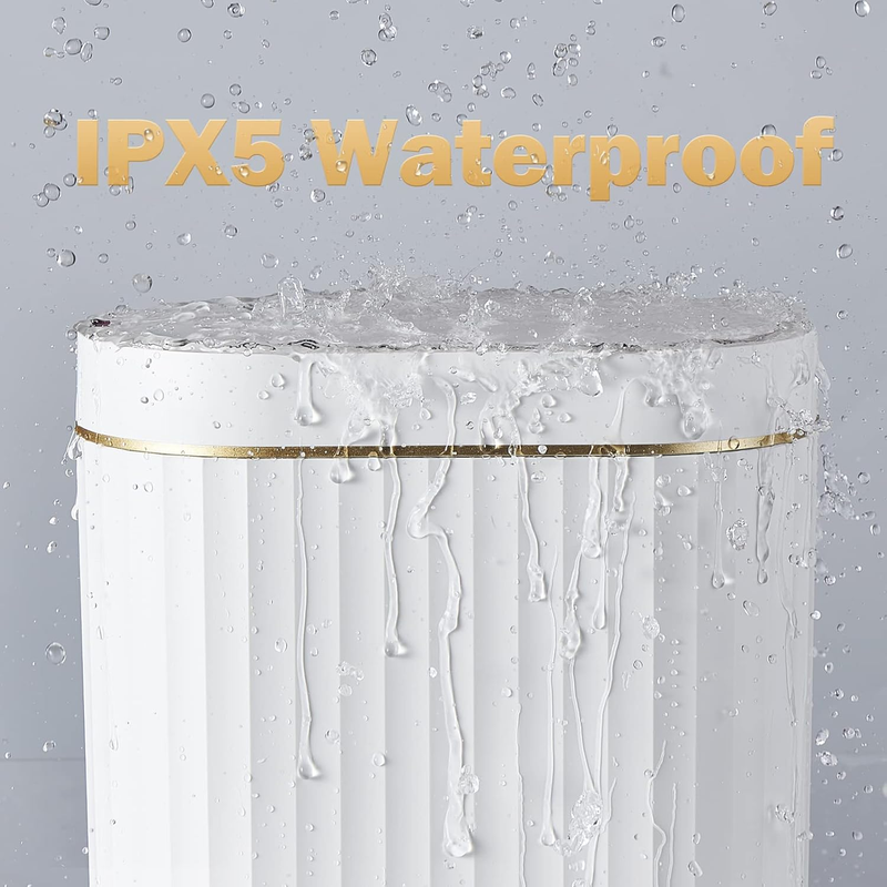 Automatic Motion Sensor Trash Can - 2 Gallon Slimline for Bathroom, Bedroom, Kitchen, Office - White with Gold Trim