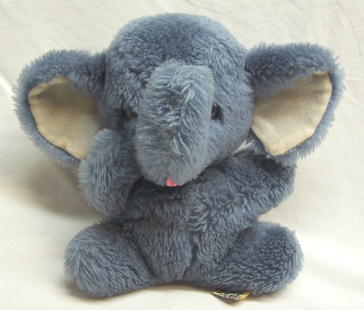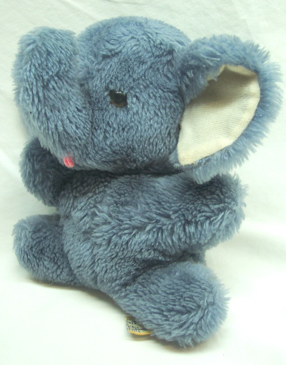 This is a ANTIQUE CUTE GRAY ELEPHANT Plush Stuffed Animal Toy. Made by Dakin in 1975. It is 6 1/2 inches tall. It is in good condition. It is CLEAN. No Stains, Tears, Or Defects.