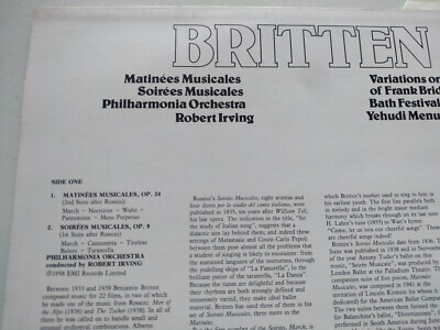 Britten Matinees Soirees Musical Yehudi Menuhin CFP 40308 LP 12 " Vinilo VG/VG