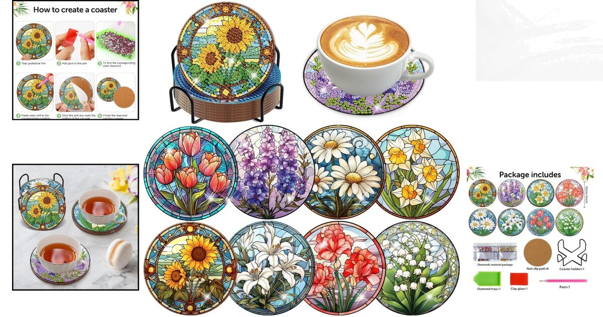 Elegant 8-Piece Diamond Painting Coaster Set and 50 similar items