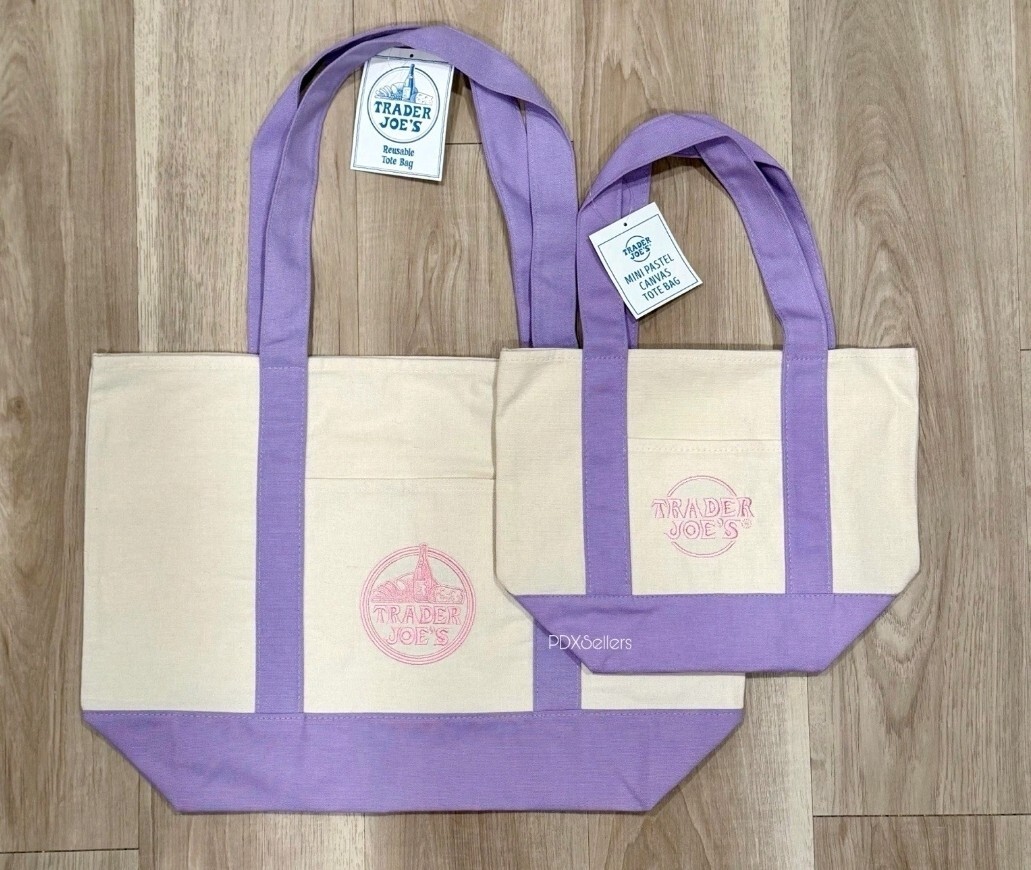 Trader Joe’s Lavender Canvas Large & Mini Tote Bags Set - Will Ship Out Next Day