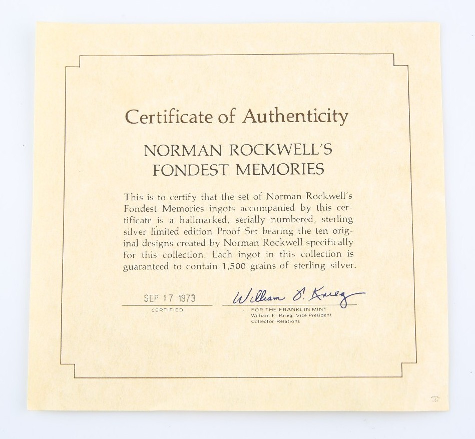 1973 Norman Rockwell Memorie più affettuose 10x .925 barre d'argento 1a edizione set di prove