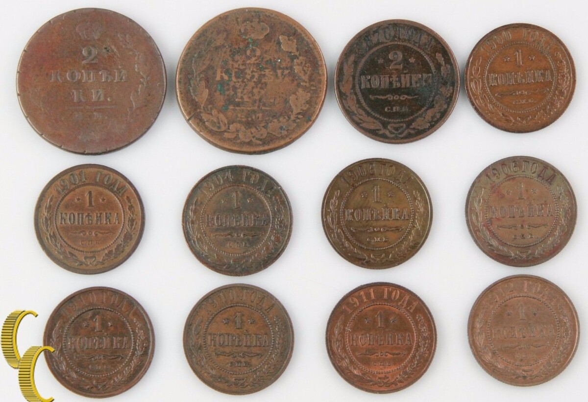 1812-1912 Russia 1 2 Kopek Lotto (12 monete) Impero Kopeck C#118 Y#9.2 10.2