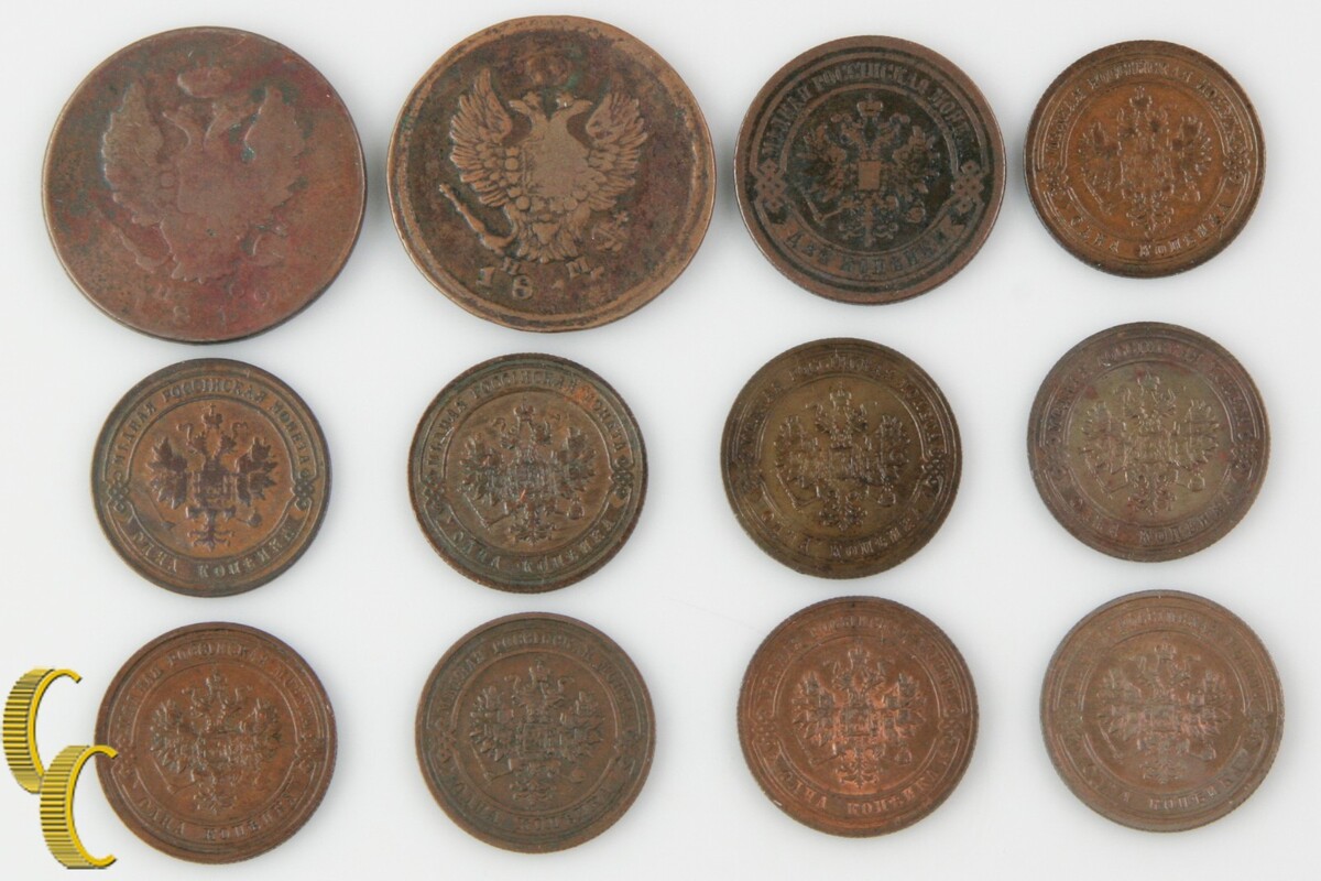 1812-1912 Impero russo 1 e 2 lotto di Kopek (12 monete)