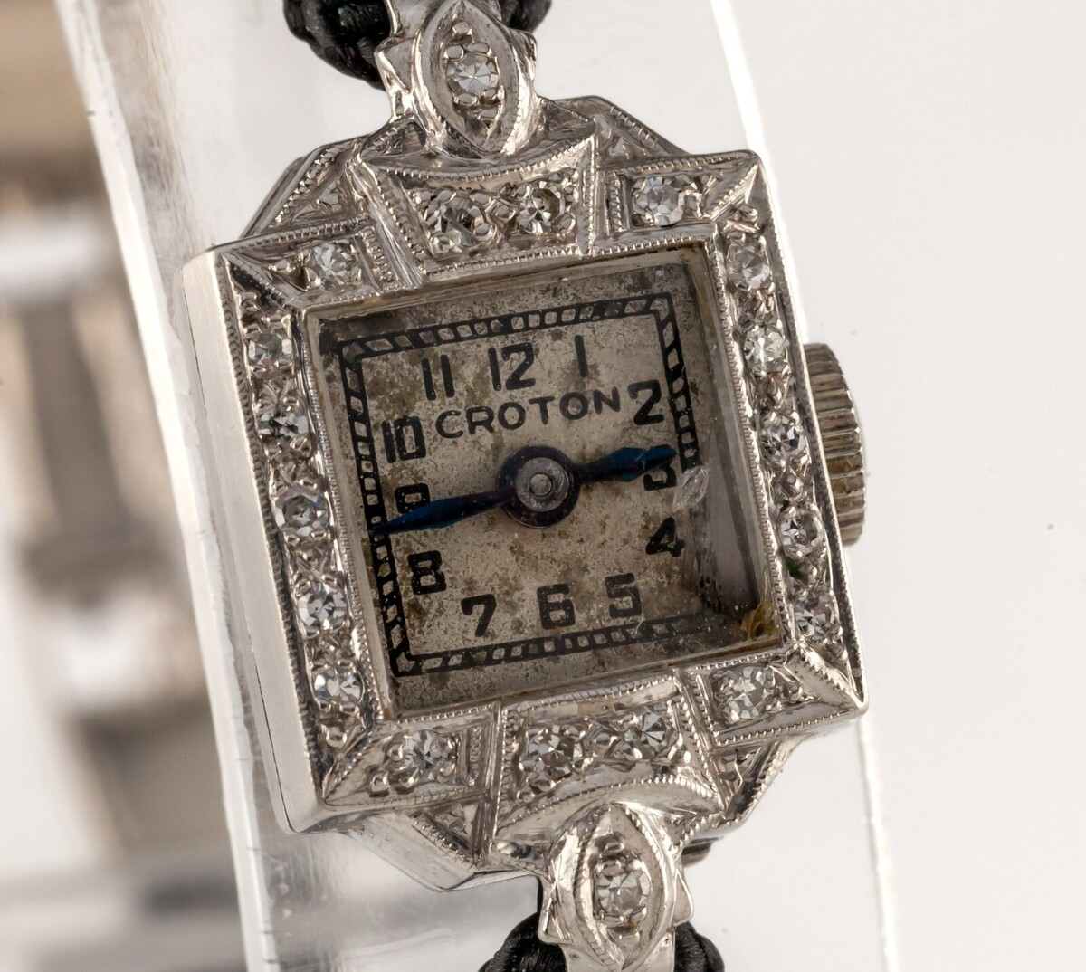Orologio Da Donna Croton In Oro Bianco 14K Con Diamanti A Carica Manuale