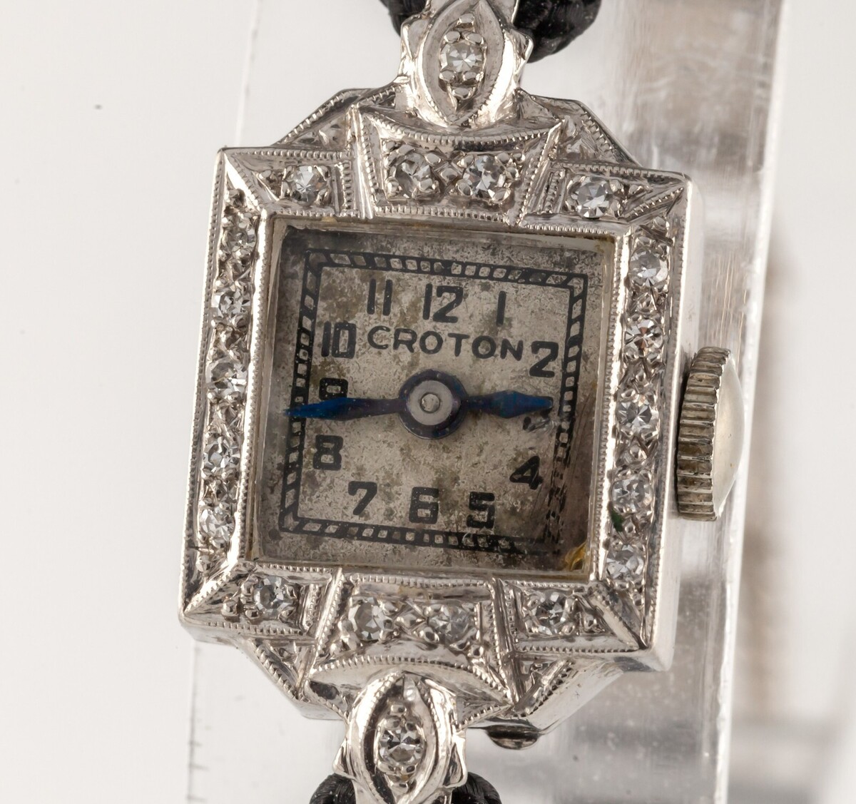 Croton 10k White White Gold Diamond's Diamond-Winding Watch W/ Cord Band