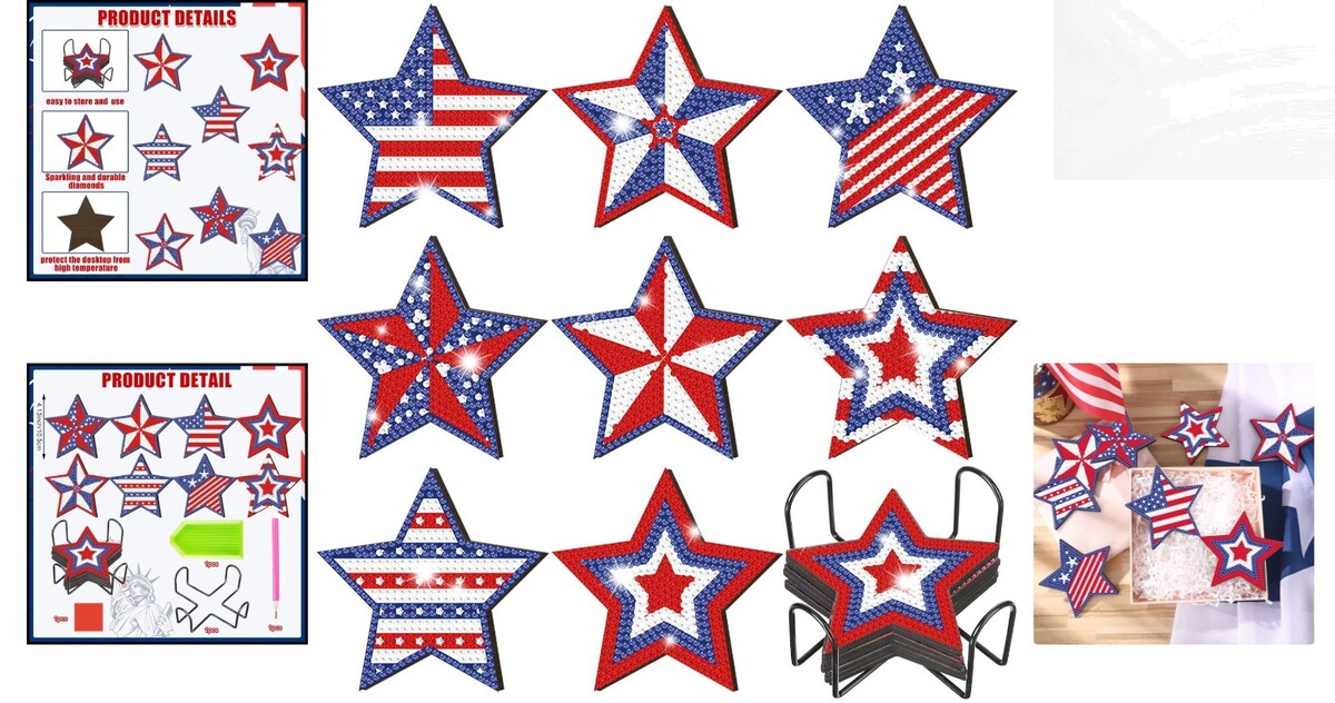 Celebrate freedom and creativity in style?order your DIY Diamond Painting Coasters Holder Set today!