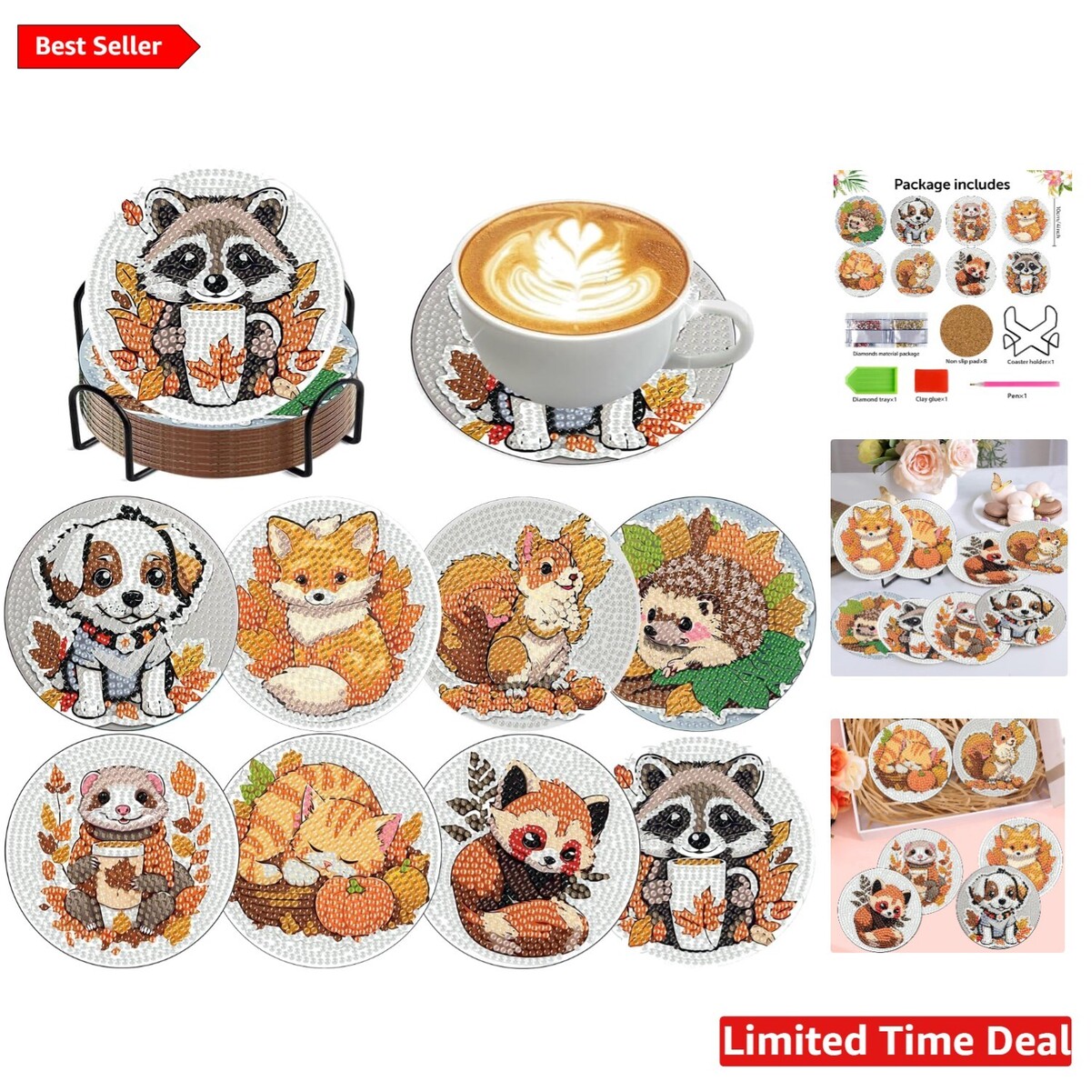 DIY 8 Small Animals Diamond Art Coasters with Holder - Perfect Gift for Crafters