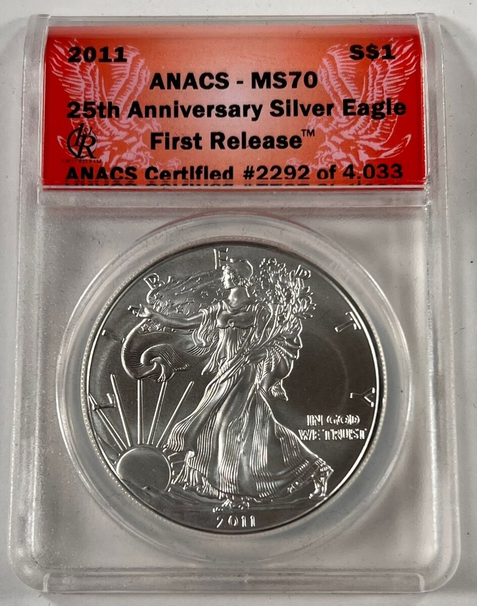 2011 Plateado American Eagle Graduado Por Anacs Como MS-70 Primer Liberación