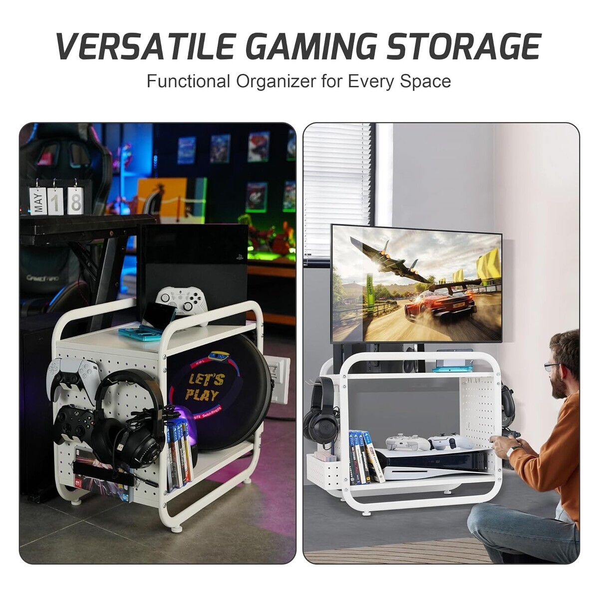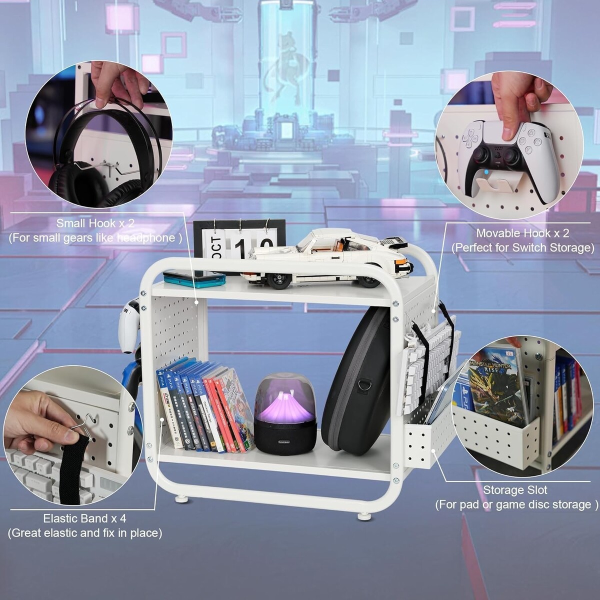 Comprehensive Gaming Organizer: This gaming station organizer rack is designed for avid gamers, offering dedicated storage for gaming consoles for PS5, PS4, Xbox, Switch, controllers, headsets, keyboards, and more. It?s the perfect all-in-one solution for your gaming accessories.