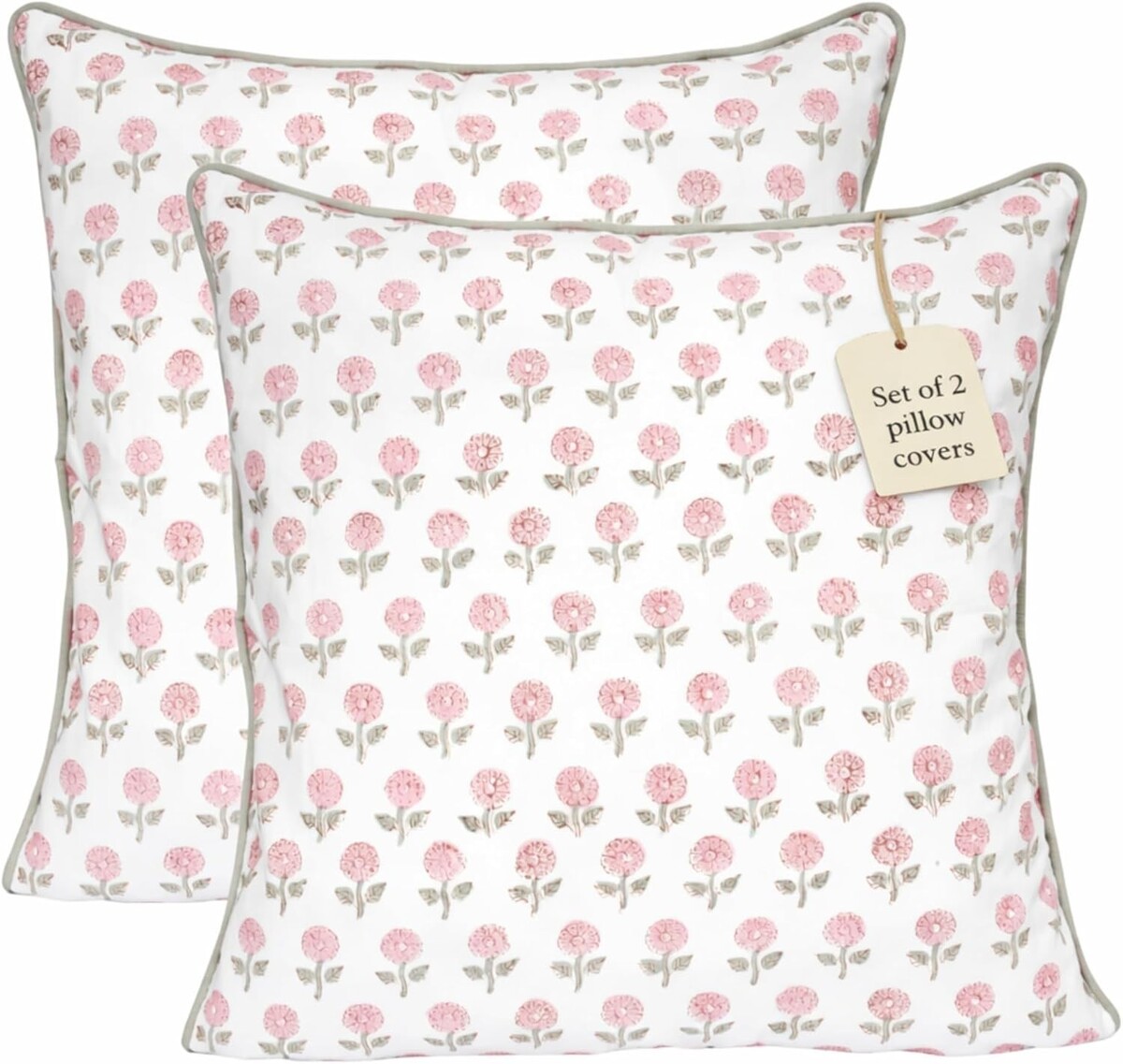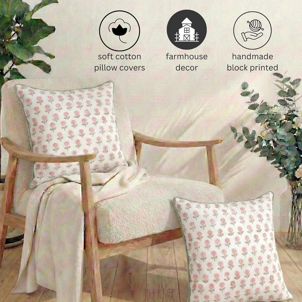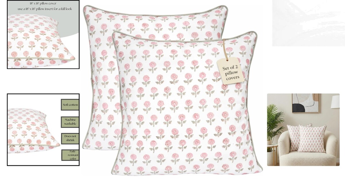 Hand Block Printed Pink Floral Design: Artisan-made floral print with subtle variations adds charming farmhouse and cottage-style character to your decor.