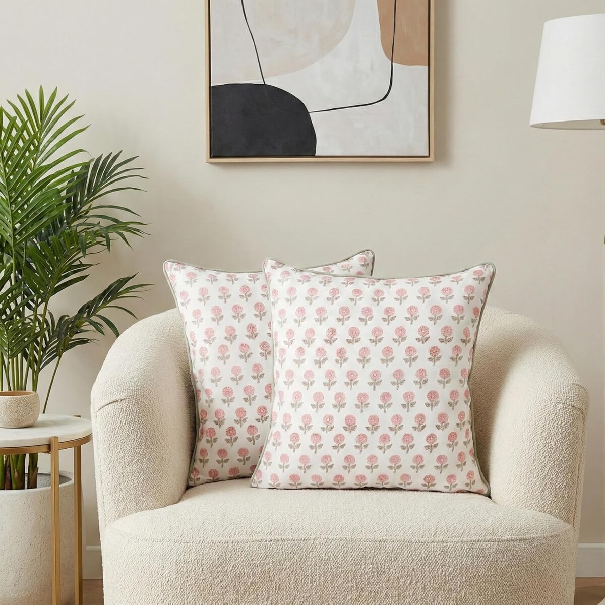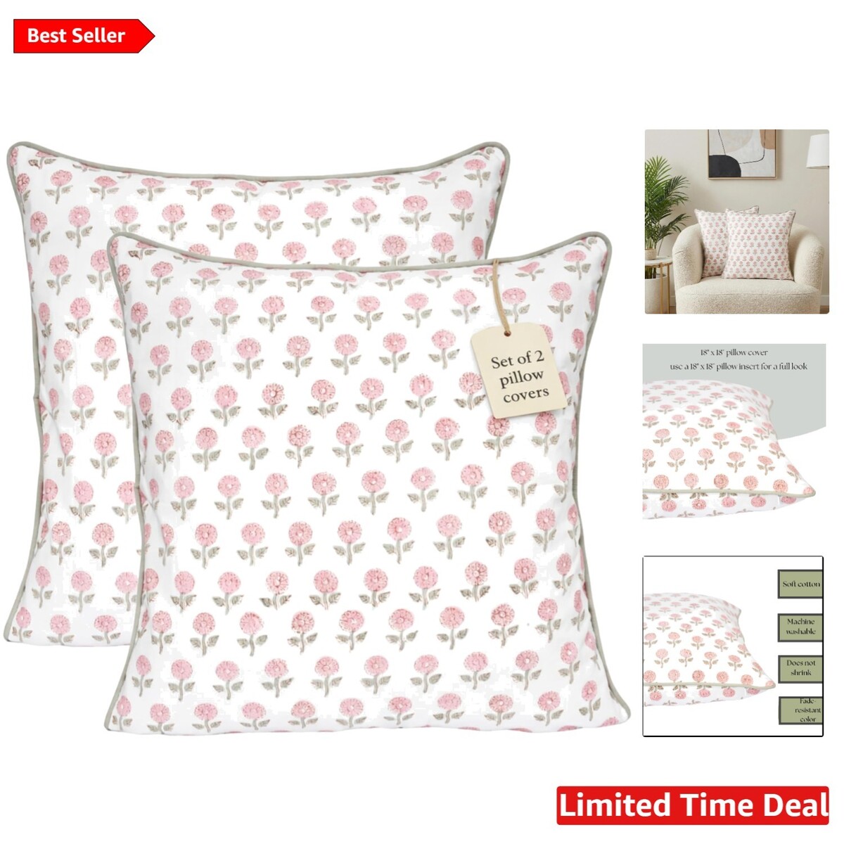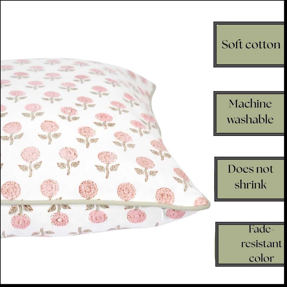 Hand Block Printed Pink Floral Design: Artisan-made floral print with subtle variations adds charming farmhouse and cottage-style character to your decor.