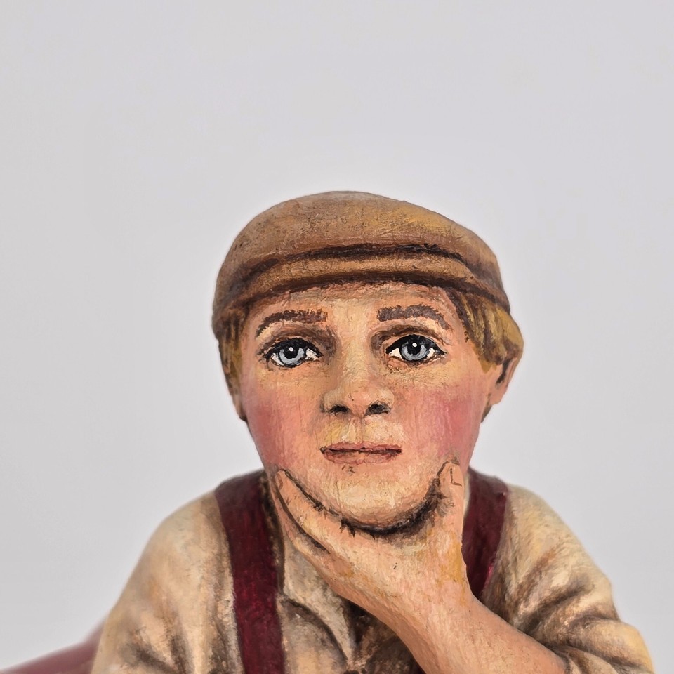 VINTAGE HAND CARVED CRATE PROSPECTS WOOD WOODEN CHILD BOY SIGNED SHARON