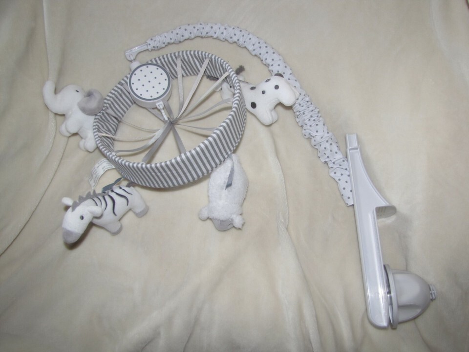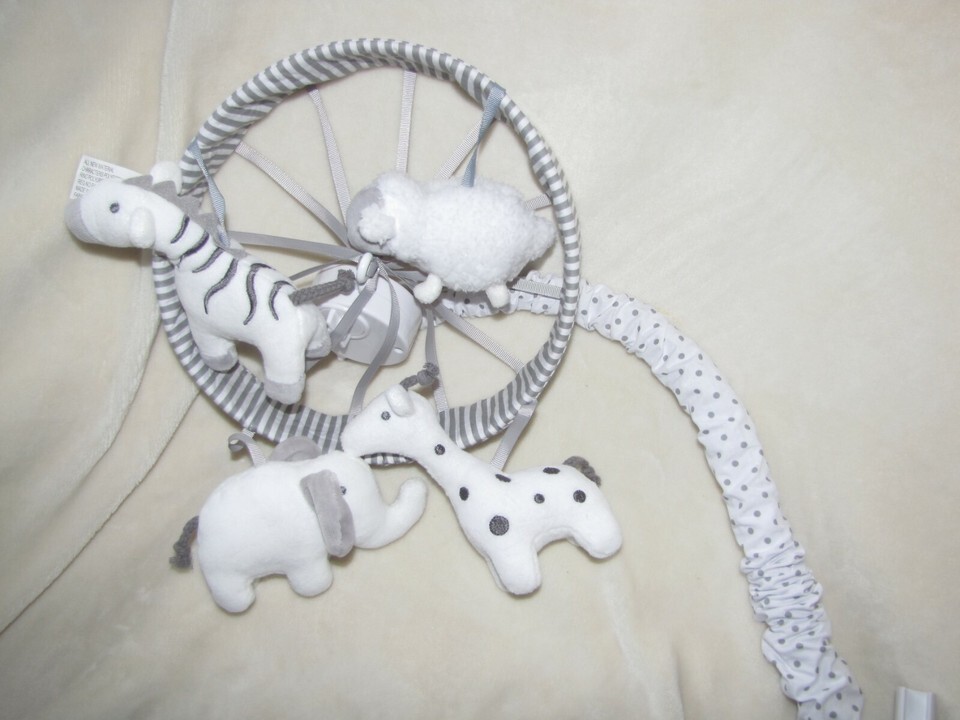 Crib Mobile Two by Two Cloud Island Gray White Zoo Animal Giraffe Elephant Sheep