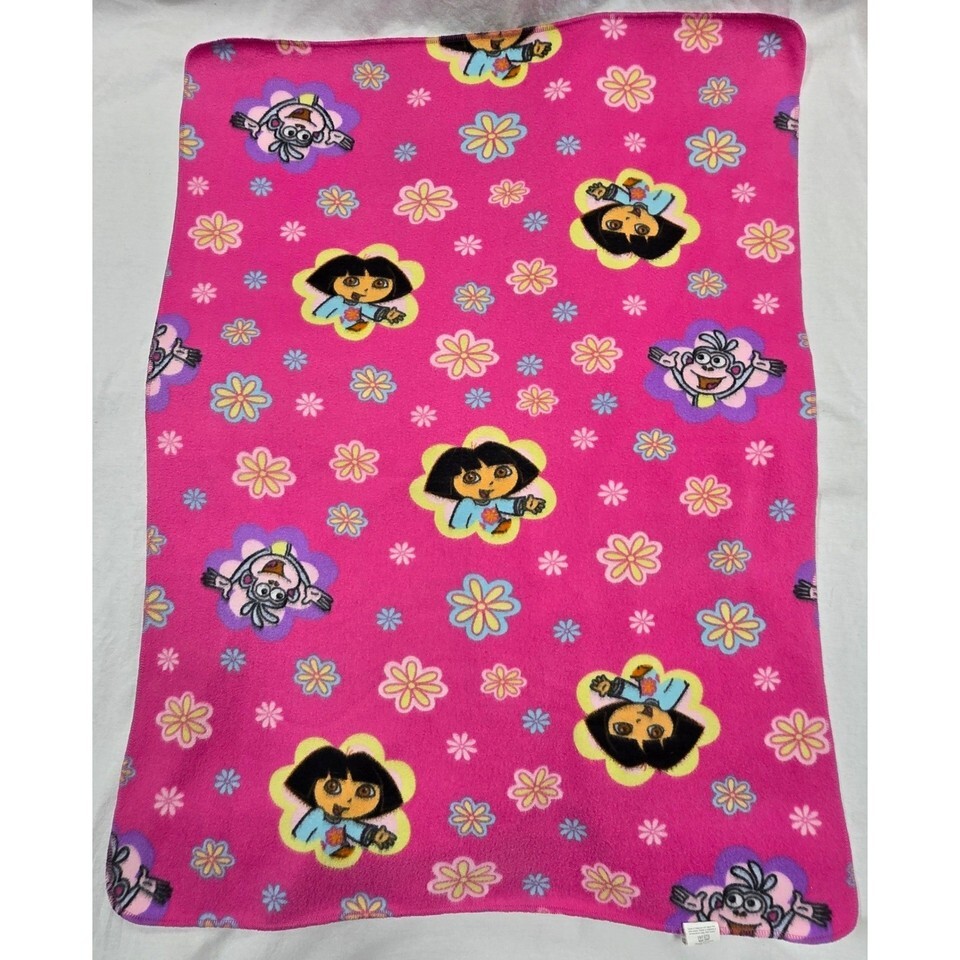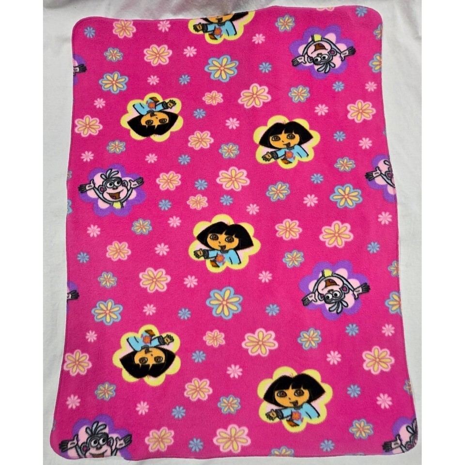 Nick Jr Dora the Explorer Pink Fleece Throw Blanket 2007 Viacom Flowers VTG Y2K