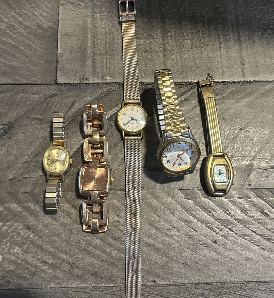 Lot of 5 Gold Tone Women's Watches Collezio Kim Rogers Classic Estate Finds EG