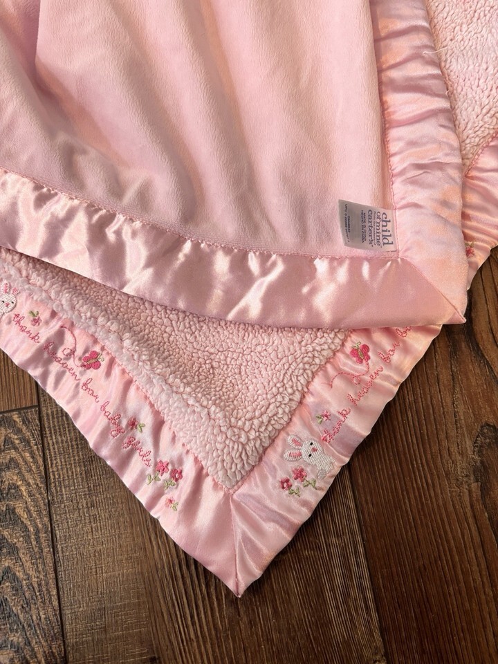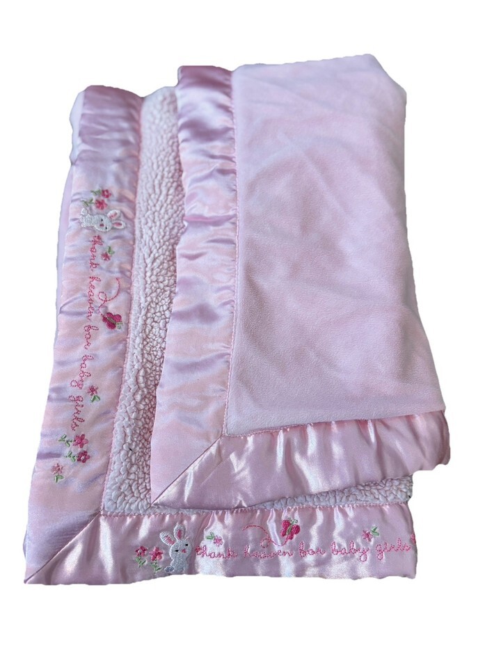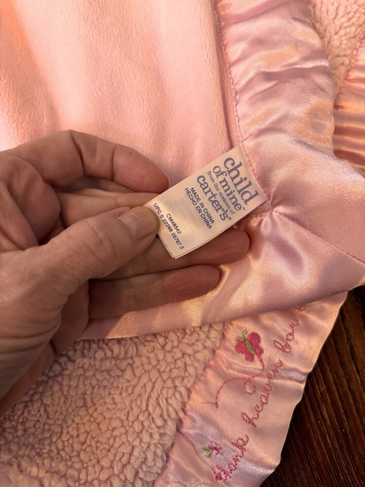 Carters Child of Mine Thank Heaven for Baby Girls Sherpa Pink Satin Blanket