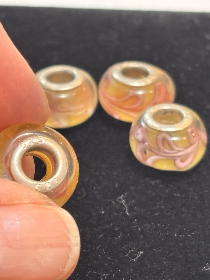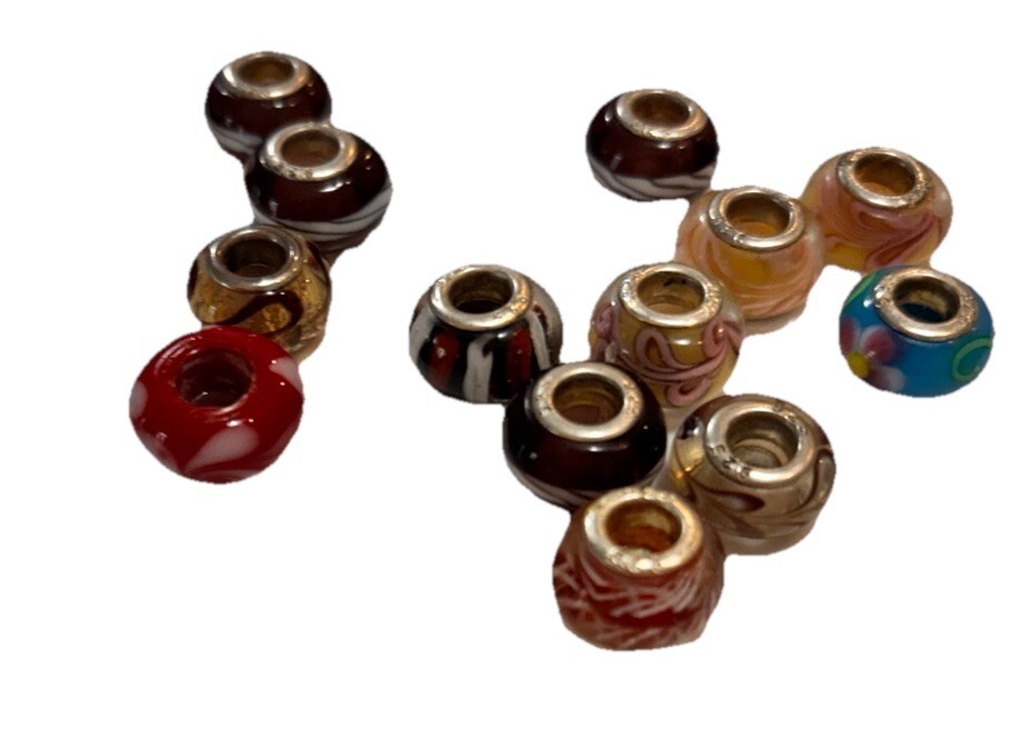Lot 15 Lampwork Glass European Beads Silver Core Pandora Troll Bracelets 925