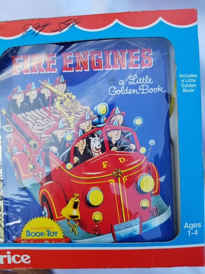 Vtg 1987 #2250 Fisher-Price Classics "Fire Engine & Little Golden Book" lot new