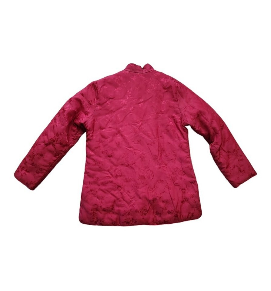 Vintage Women Silk Brocade Jacket Mandarin Chinoiserie Overcoat Magenta S/M