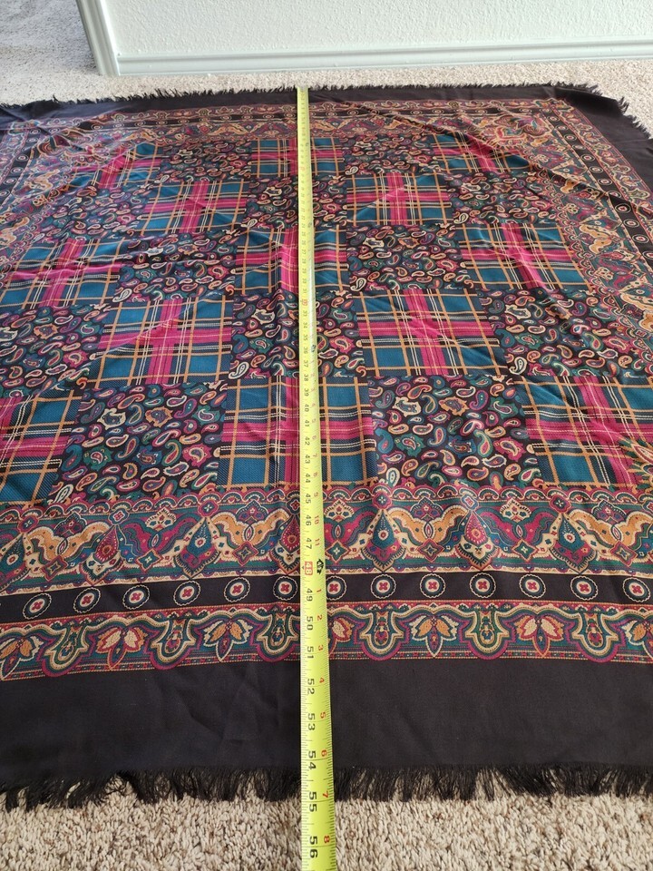 Vintage Carlisle(?) Woolen woven Big 54"x54 Shawl Scarf Plaid Paisley