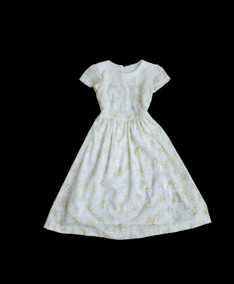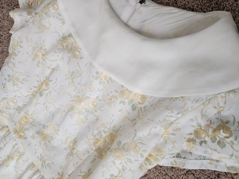 Vintage 80s Romantic Cottagecore Kei Fashion yellow Rose fit flare Dress W27"