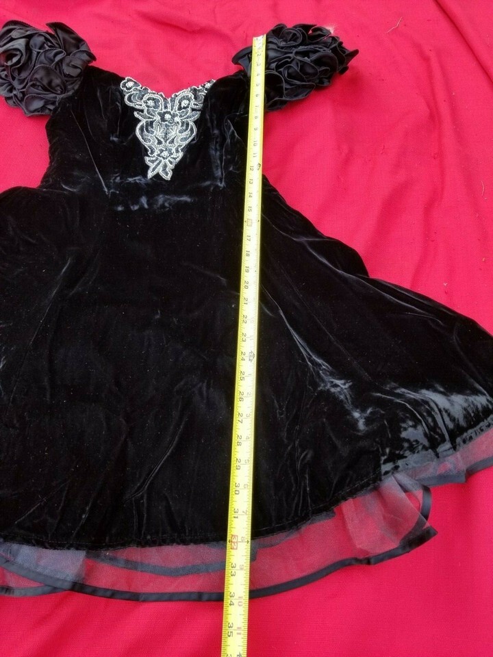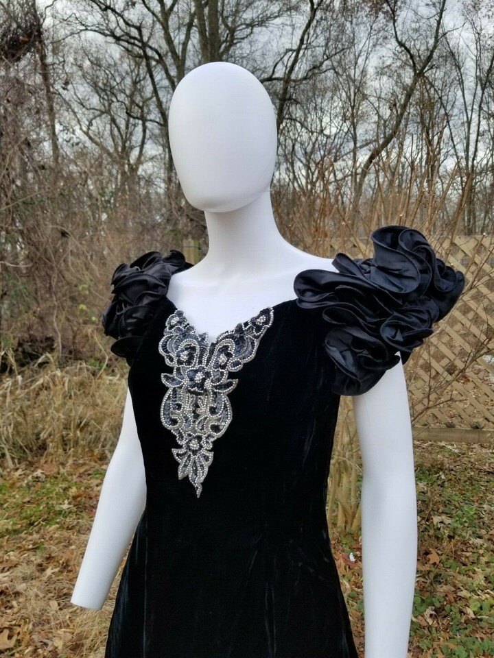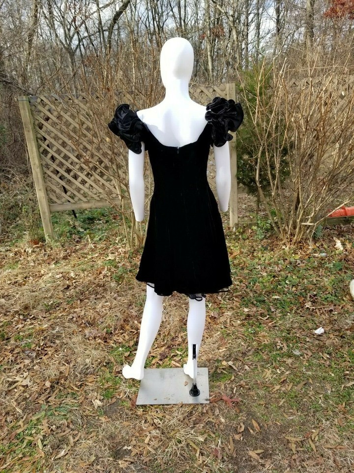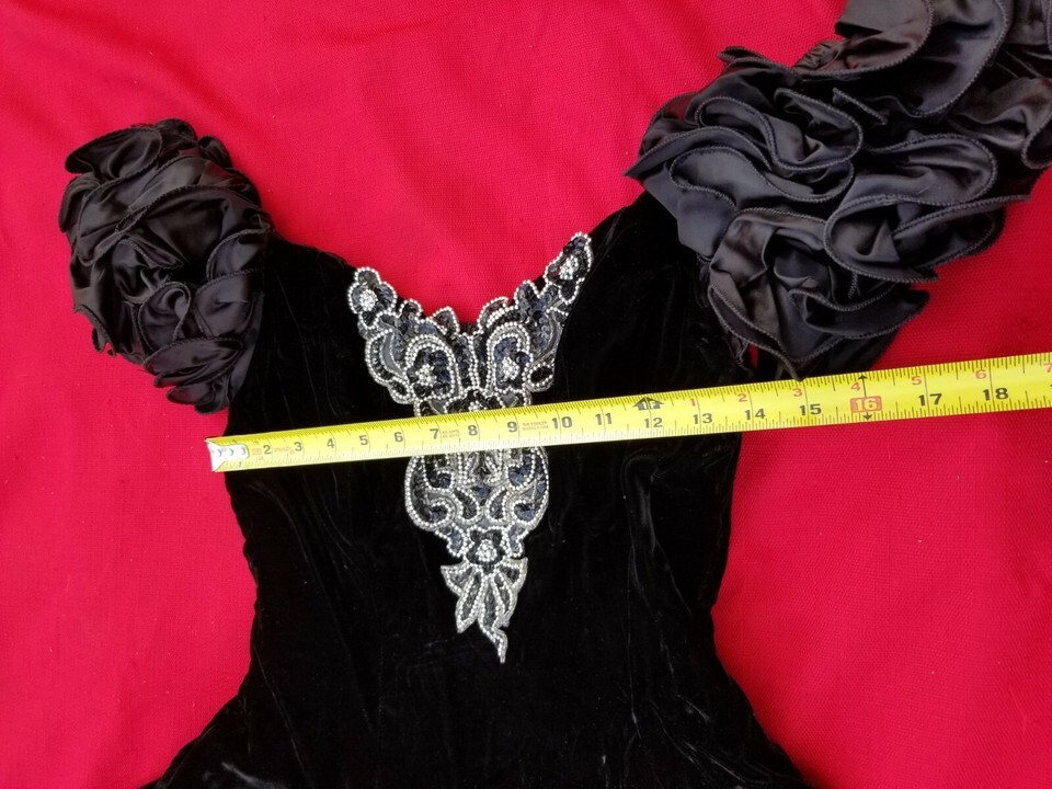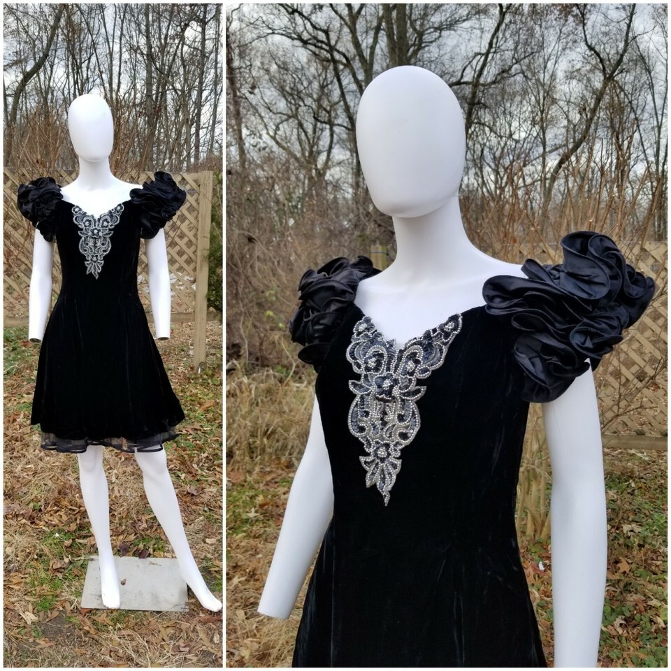 Vintage Betsy & Adam black velvet peticoat cocktail Puff Sleeve Dynasty dress S
