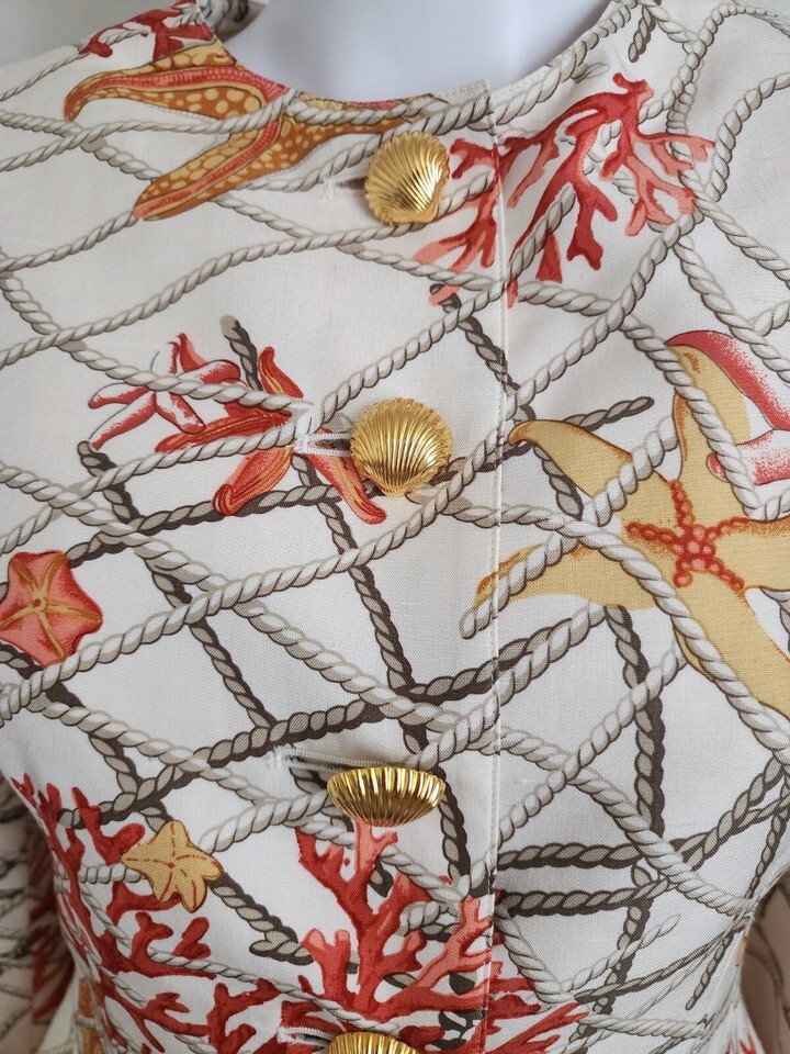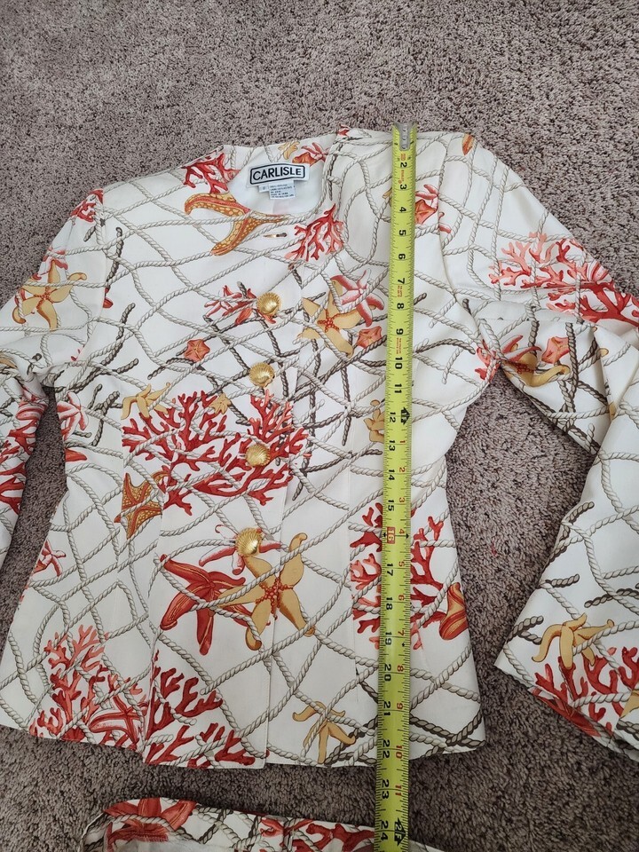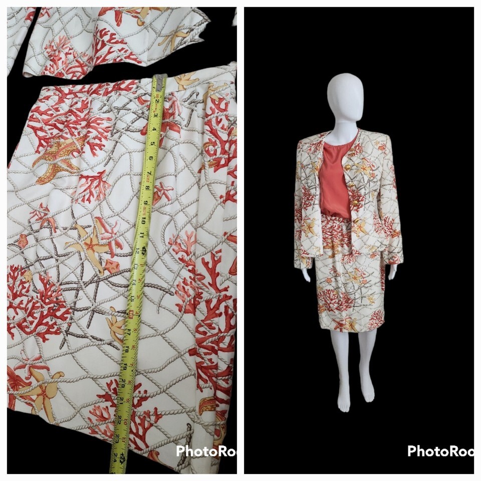 Vintage Carlisle Silk Sea Starfish corral fitted jacket & Skirt 3 Pc Set W27