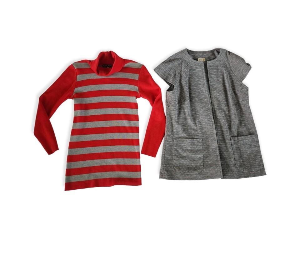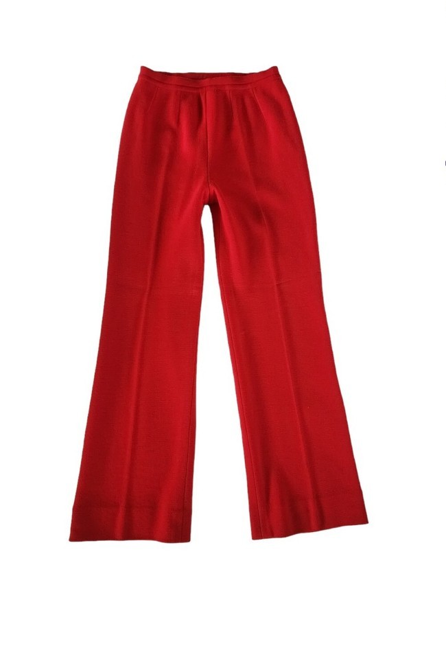 Vintage 70s Maglieria F.Negri Wool Red Stripe Knit Turtleneck,Vest Wide Pant set