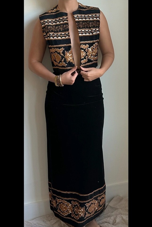 Vintage 60-70s Jo Hardin Tapestry Carpet Vest /skirt Set Boho Hippie Festival