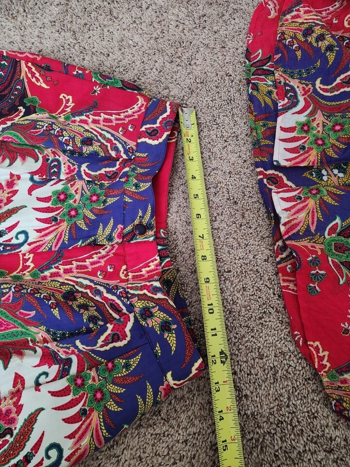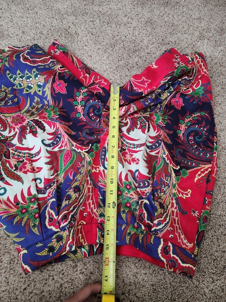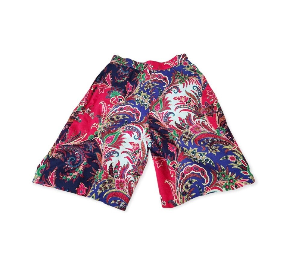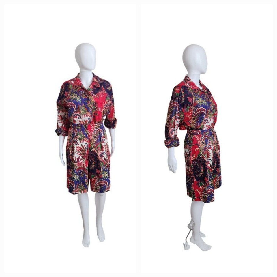 Vintage 80s Carlisle Paisley Scarf Print silk Blouse & cotton Short Set W25"