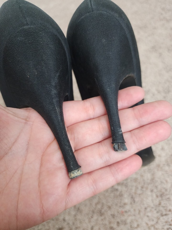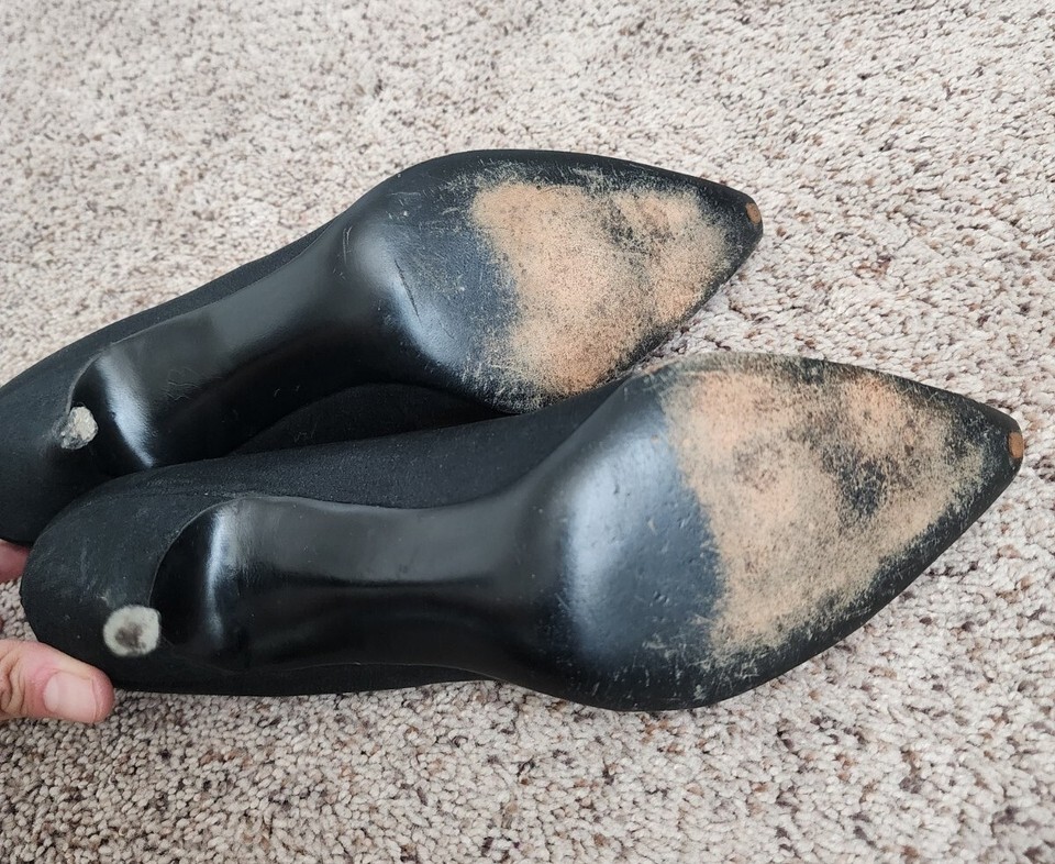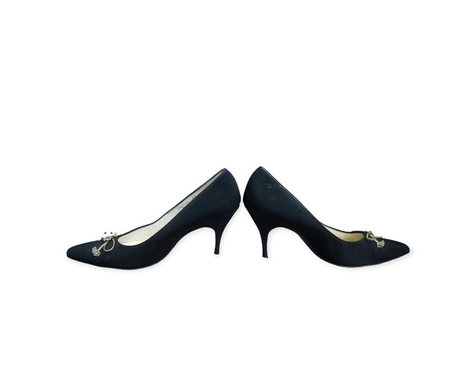 Vintage 50s Customcraft SCHWARTZ BENJAMIN Black Satin Pumps Glass Beads 8.5 AA
