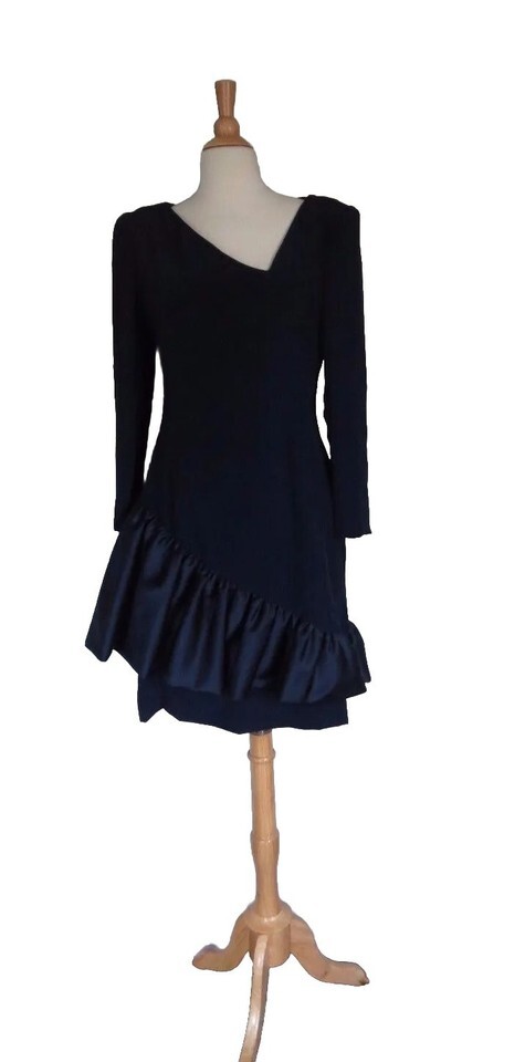Vintage 1980 Arthur Doucette avant garde Navy cocktail prom dress size 6