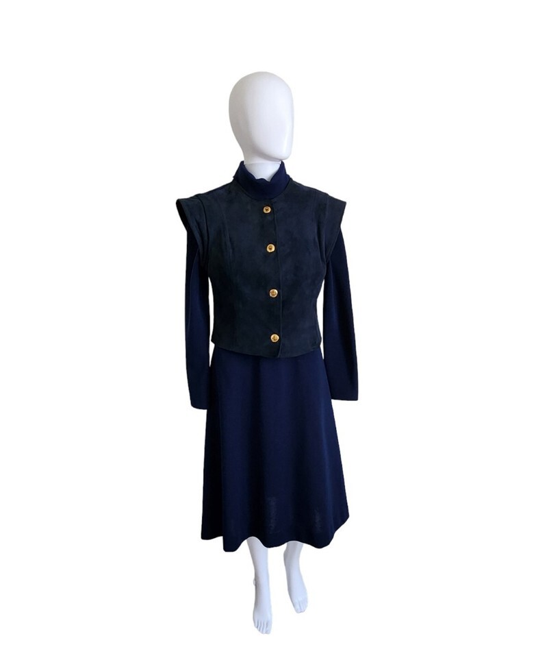 Vintage 60-70s Charles Alan by Nancy Van Raalte Midi Dress & suede Vest Set W26"
