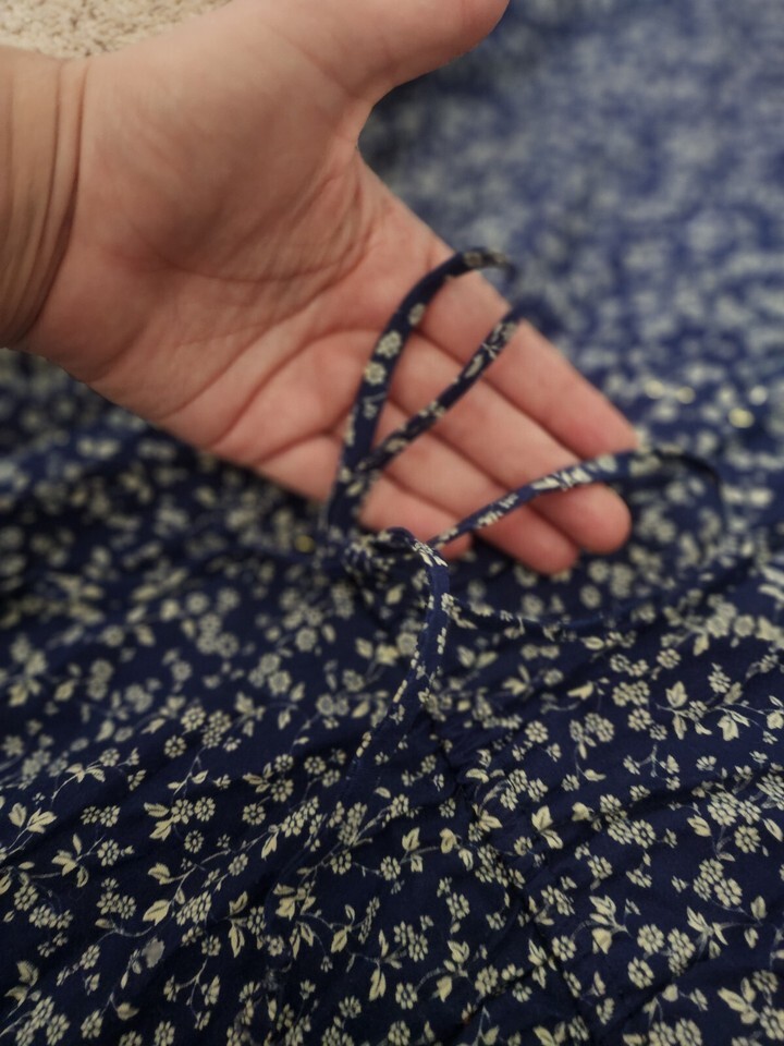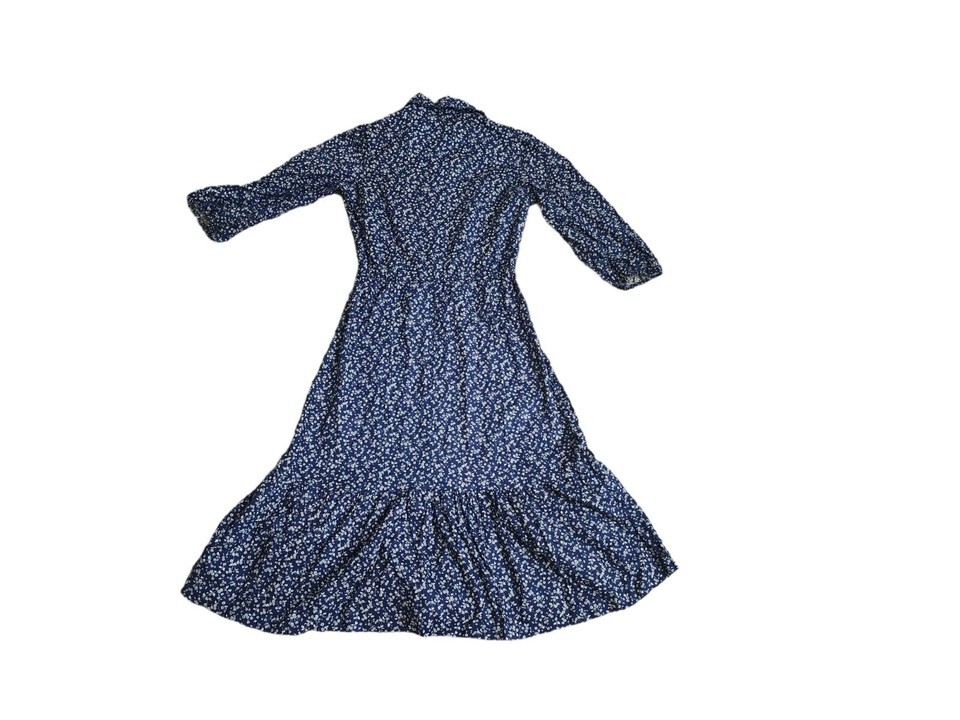 Vintage 70s Youth Girl Ditsy Floral Calico Blue Midi Prairie Dress W24"