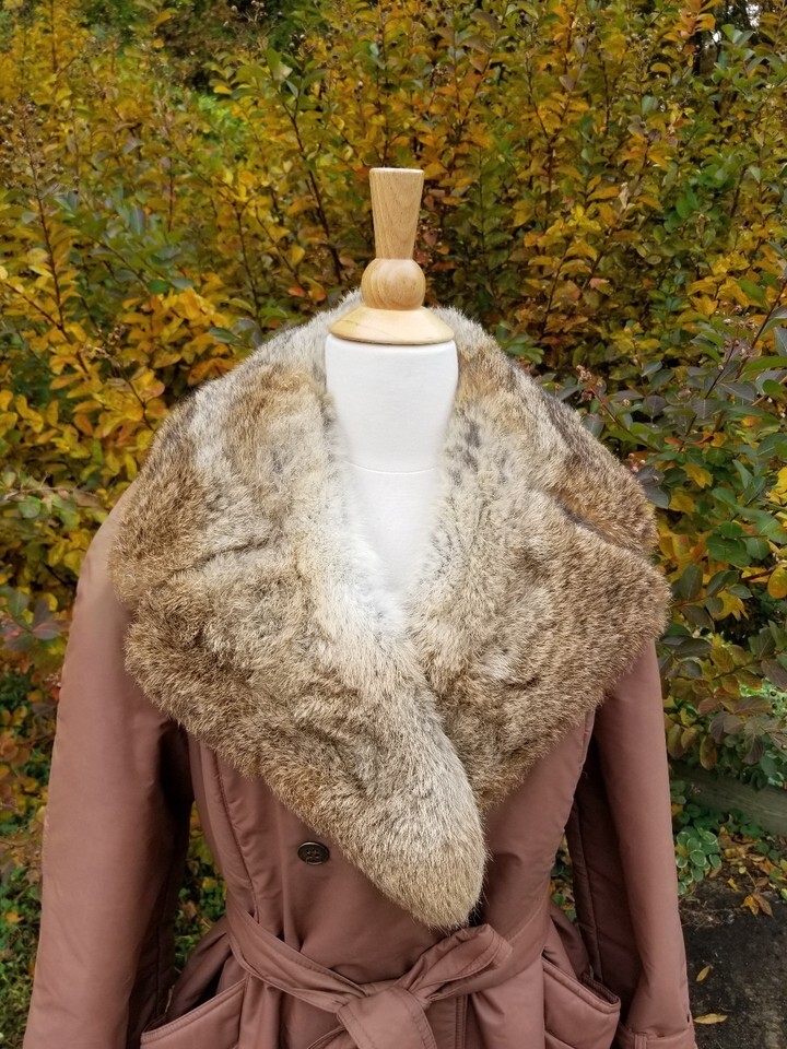 Vintage 70s Fleet Street brown Khaki Trench coat Fur Collar Size 16.5 or L