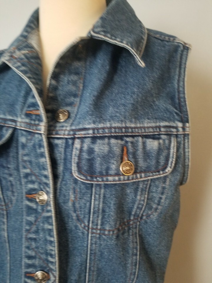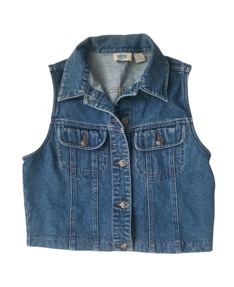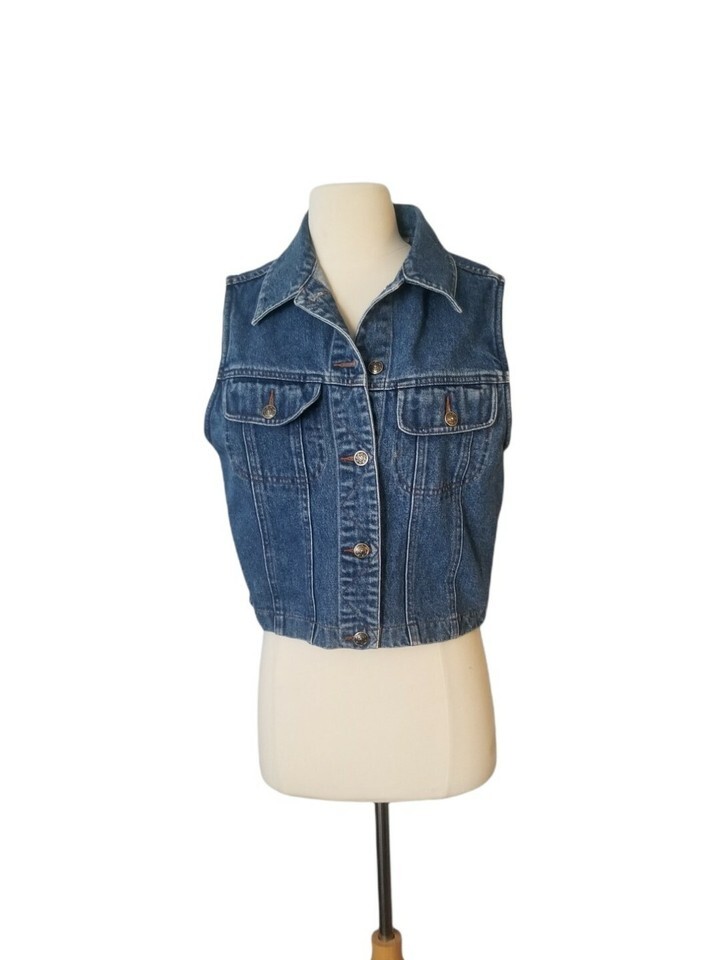 Vintage 80-90s Grunge Trucker "Pasta" Denim Women biker Vest Jacket M