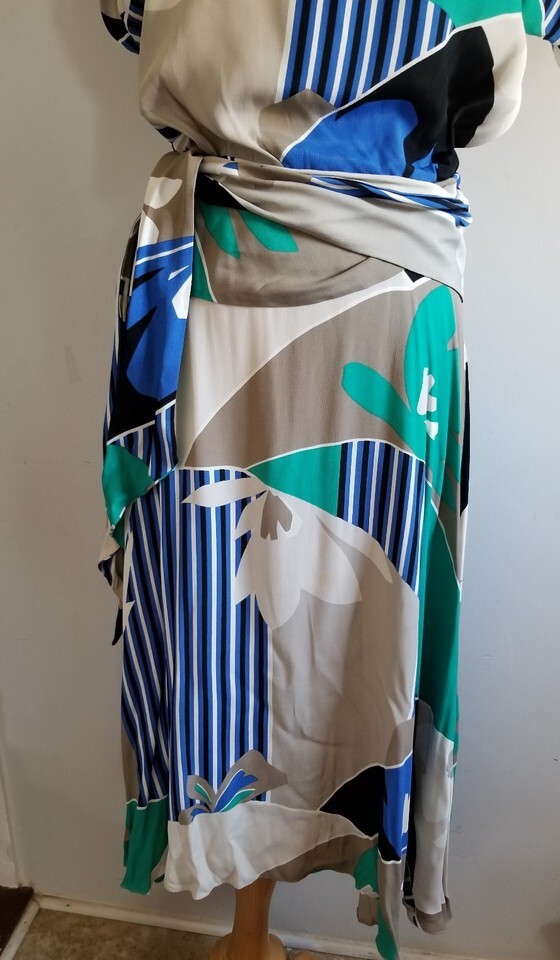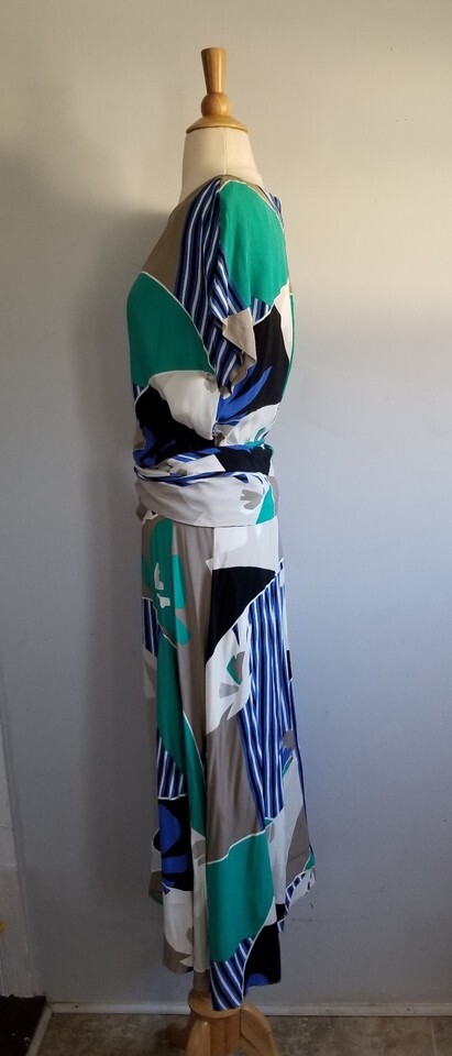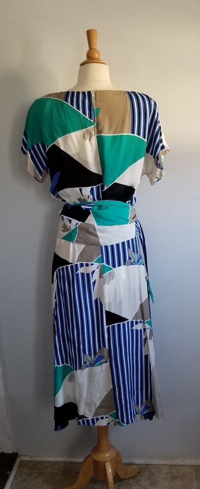 Vintage 1970s the Kollection Ltd midi oriental abstract print crepe dress W27"