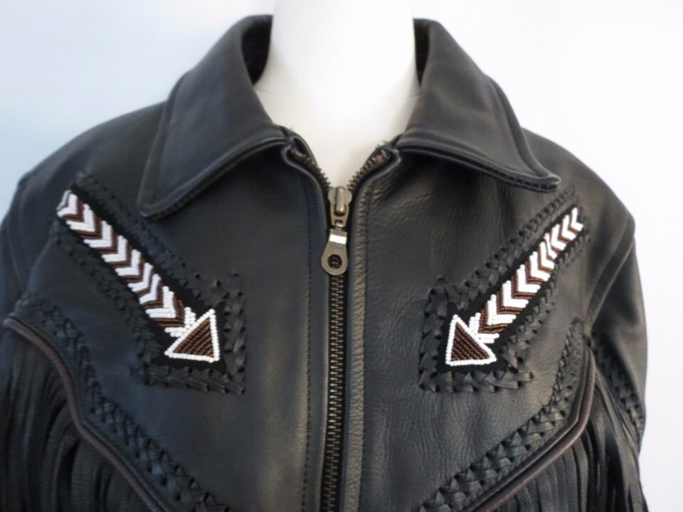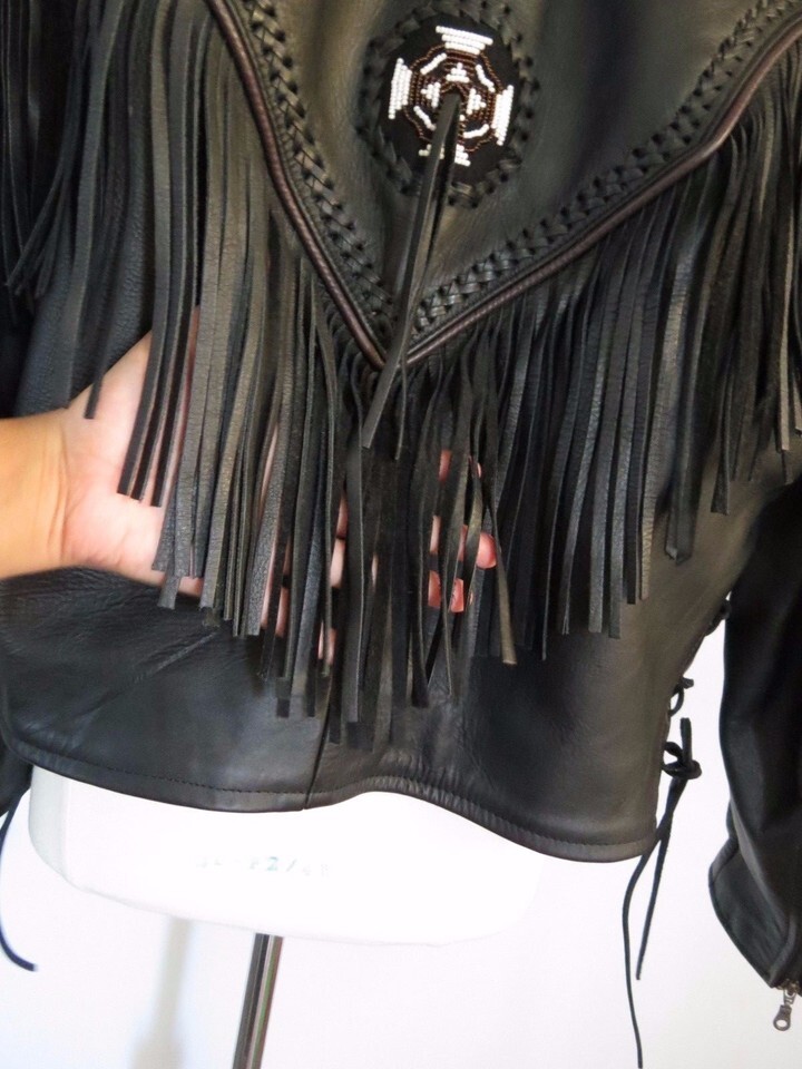 Megaforce protective leather women western beaded fringed biker jacket 16