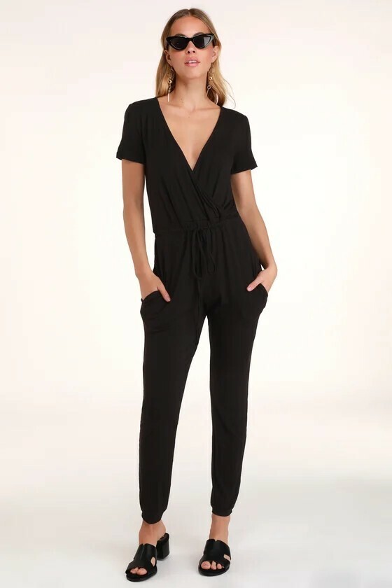 Lulus SEVANNAH charcoal Gray rayon SHORT SLEEVE JUMPSUIT M or 6-8 new