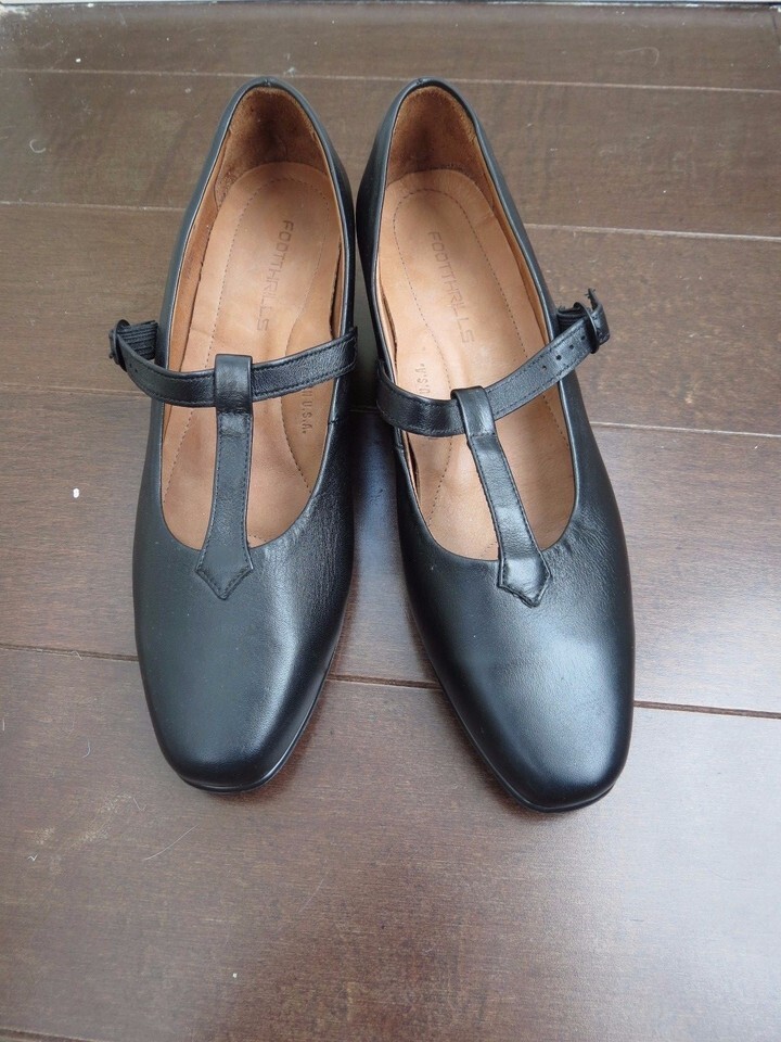 Footthrills Womens T-strap Mary Jane Pumps Heels Shoes Black 9.5 USA Made