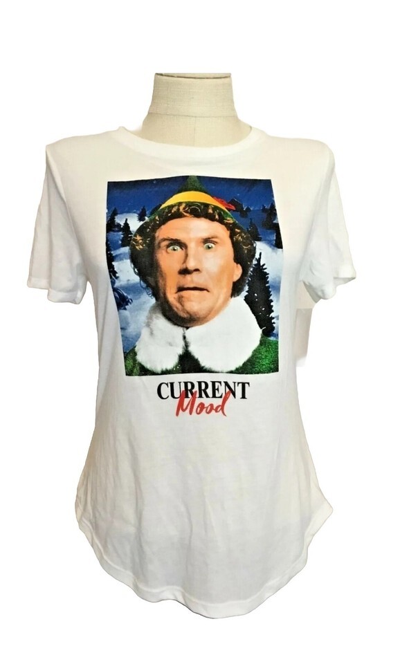 ELF CURRENT MOOD White Screen Print Short Sleeve Tee Shirt Juniors XS New