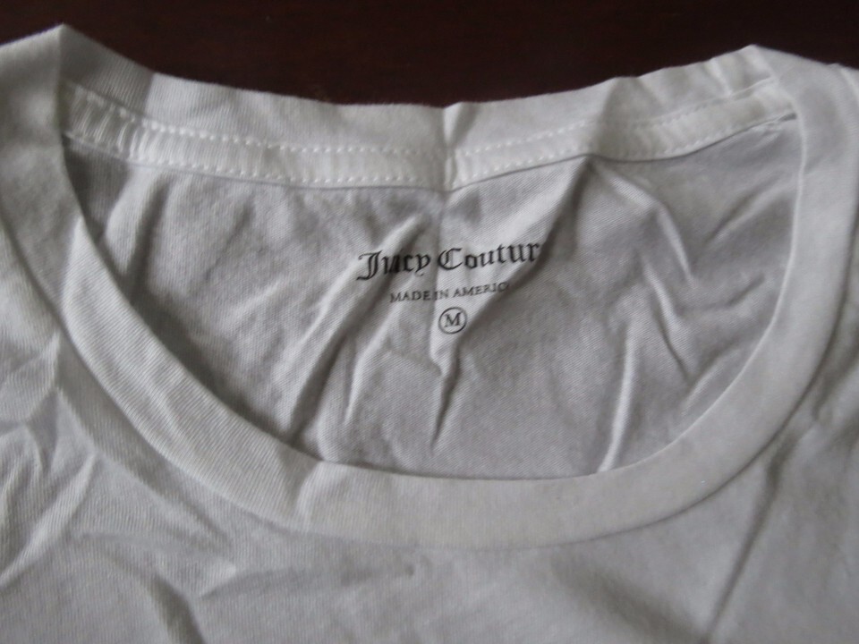 Juicy Couture Retro White Glitter Smashball tee 'Sunset' L new made in usa